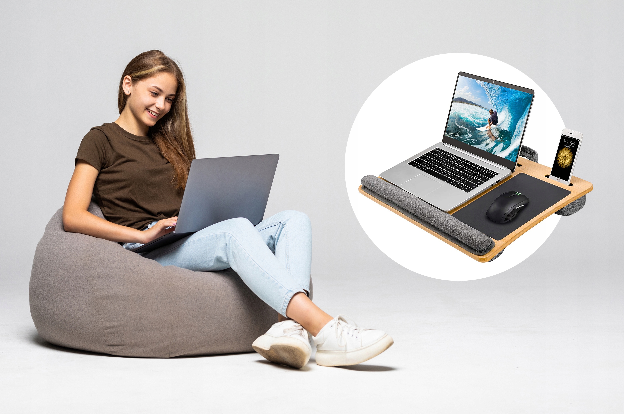 ⭐Багатофункціональна настільна підставка з бамбуковою підставкою для комфортної роботи з ноутбуком або відпочинку з улюбленою книгою.