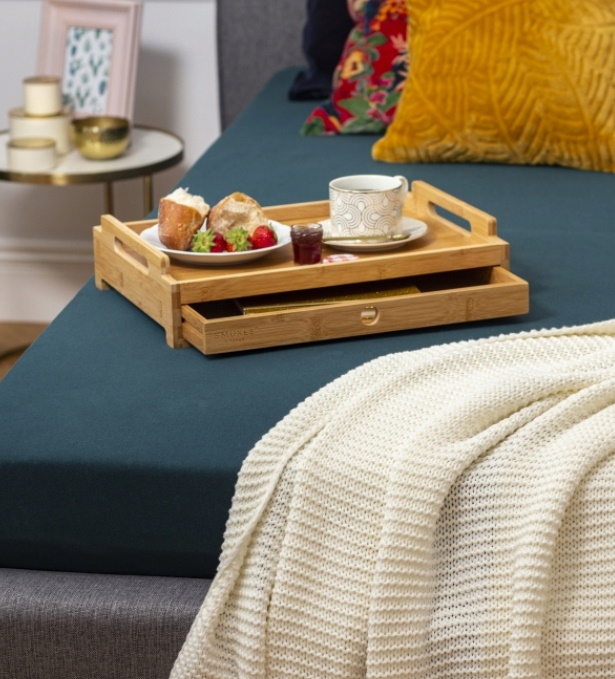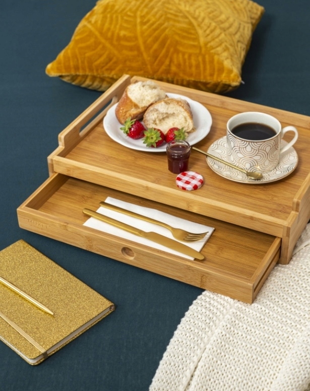 Найкращий спосіб провести суботній або недільний ранок - це спати, смачно снідаючи. Подавайте їх на підносі з натурального бамбукового дерева. У шухляду можна покласти серветки чи столові прибори.