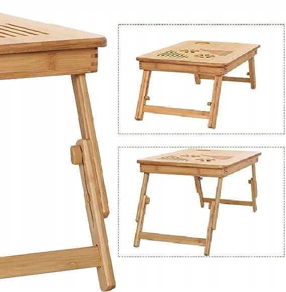 З таблицею ноутбука з вентиляцією ми можемо раз і за всіма забути, що таке дискомфорт при використанні комп'ютера. У бамбуковій таблиці для ноутбука можна відрегулювати кут стільниці. Максимальний кут 45 градусів.