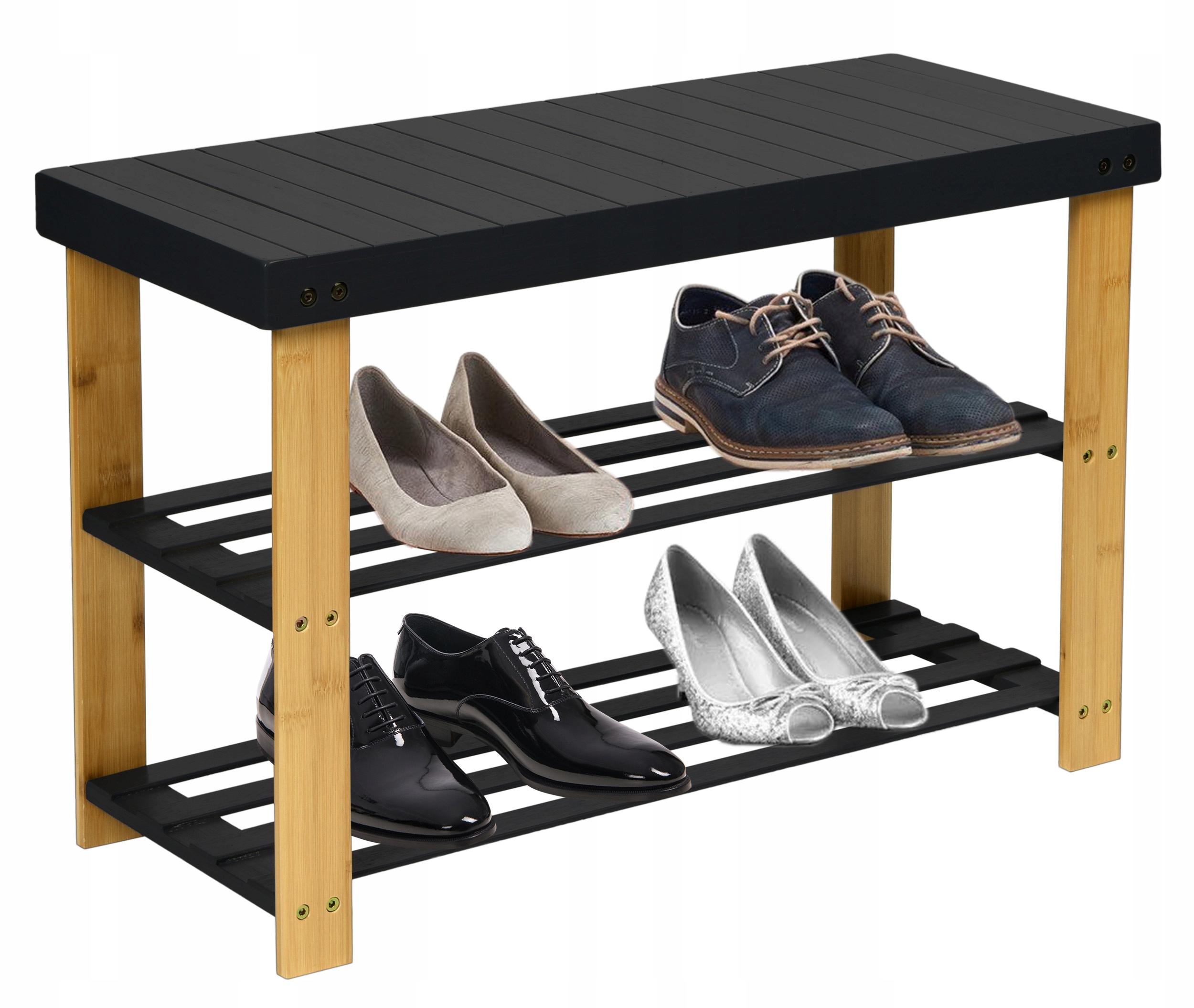 Універсальні меблі з екологічно чистого 100% натурального бамбука. Має дві полиці для взуття та зручне сидіння. Все покрите лаком, що робить його легким для чищення та стійким до вологи. Лава акуратно виготовлена, гладка із закругленими краями. Практична полиця для взуття з сидінням знайде своє використання в багатьох кімнатах. Предмет меблів підійде в передпокій, коридор, спальню, кухню або ванну кімнату.