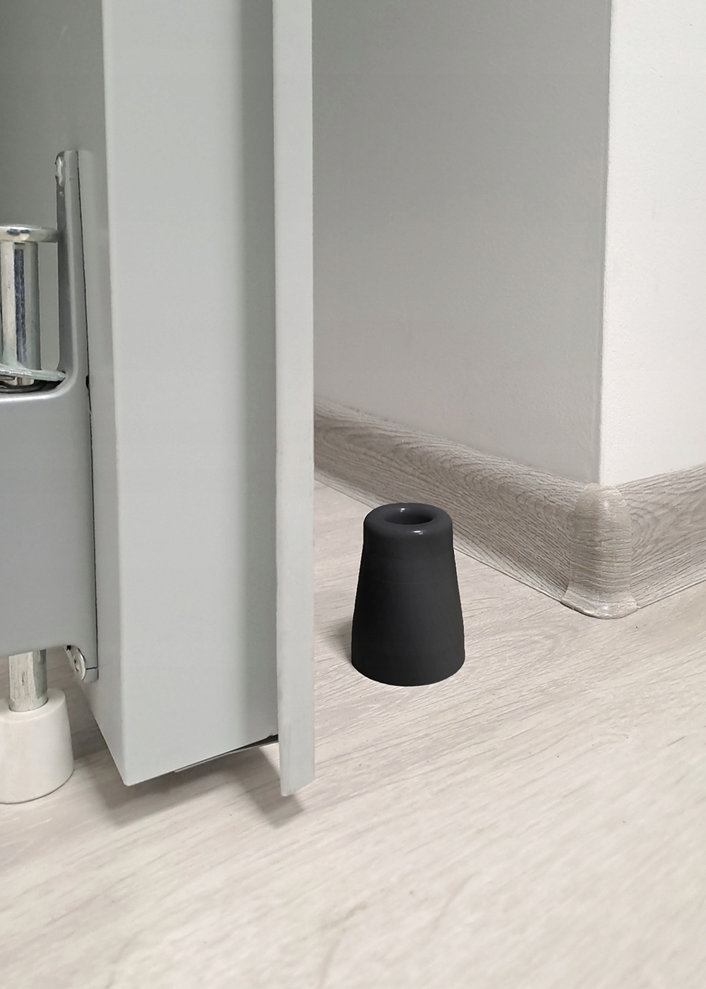Стоппер дверей, секундомір. Виготовлений з м'якого матеріалу, він захищає двері та стіну від пошкоджень. Прикручується до підлоги або стіни. Монтажний набір включено.
