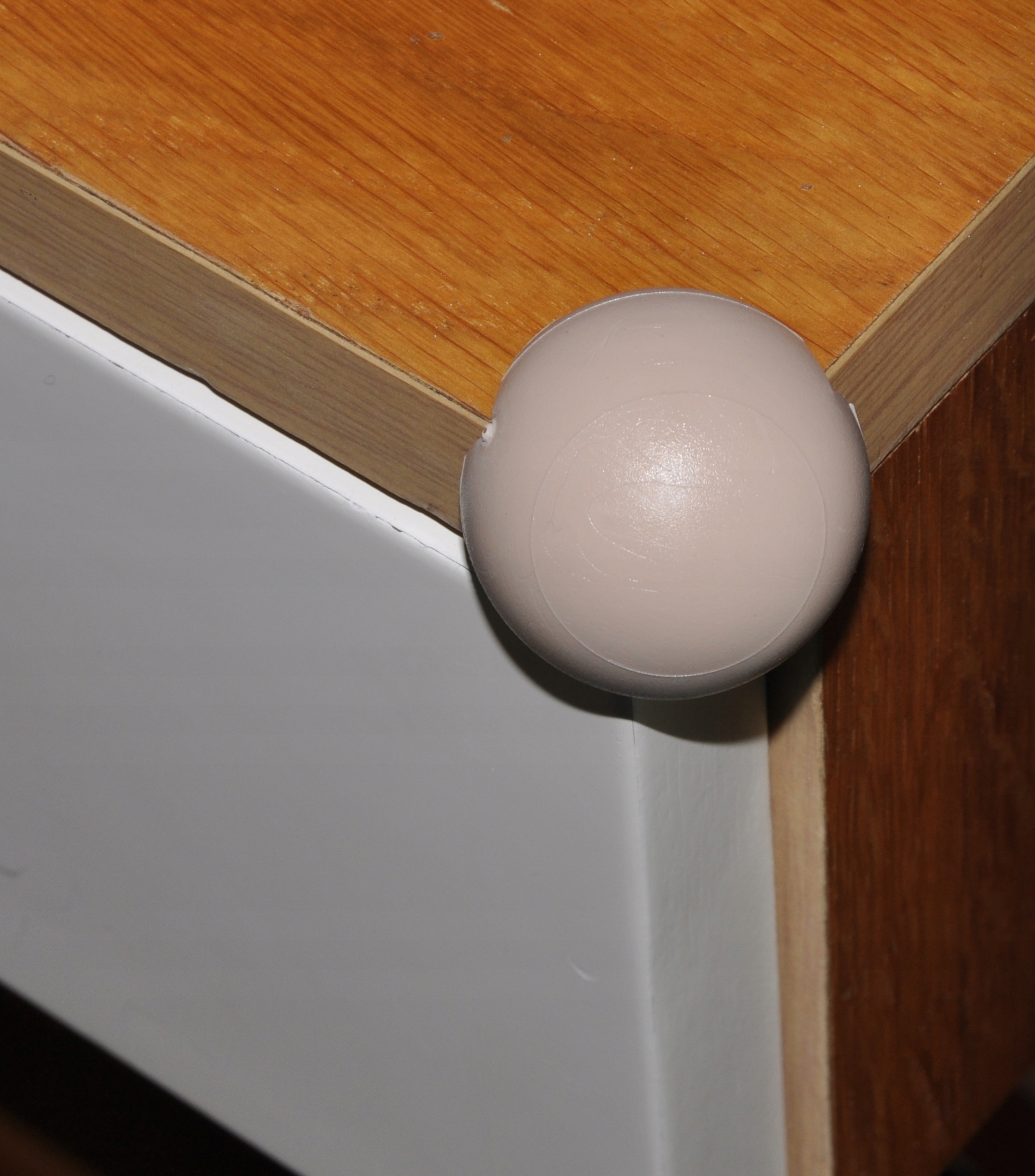 Опис: бампер виготовлений з високоякісного матеріалу. , що характеризується відповідною бежевою твердістю. Бампер виконаний у формі перетину кулі (бамперна частина), а з іншого боку на двох з трьох стінок має двосторонній поролоновий скотч (дозволяюча збірка). Бампер дуже добре захищає меблі, стіни та інші елементи, які піддаються безпосередньому впливу дверей, дверей шафи та інших рухомих елементів. Користуватися бампером дуже просто, оскільки потрібно зняти кріпильні смуги з двох його стінок і приклеїти бампер до належним чином підготовленого кута меблів (перед наклеюванням цільову область потрібно очистити від пилу, очистити та знежирити).