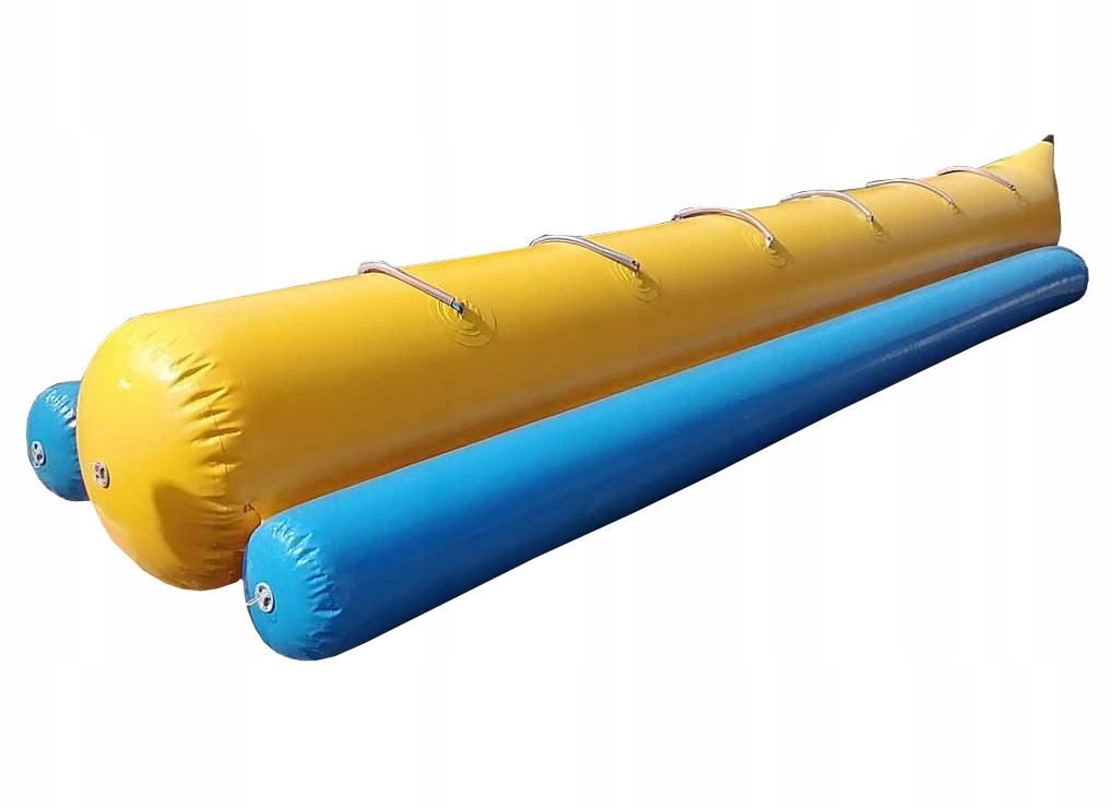Банан для буксирування виготовлений з матеріалу b> ПВХ товщиною 0,9 мм і підвищеною стійкістю до шкідливого впливу сонячних променів. Трубка у формі банана має три точки кріплення буксирного троса, що забезпечує найбільшу стабільність і безпекапід час гри. Поплавці, встановлені з боків труби, забезпечують безпеку і стабільність під час катання. Крім того, кожне сидіння обладнаноутримувальними мотузкамидля людини, яку буксирують на банані.