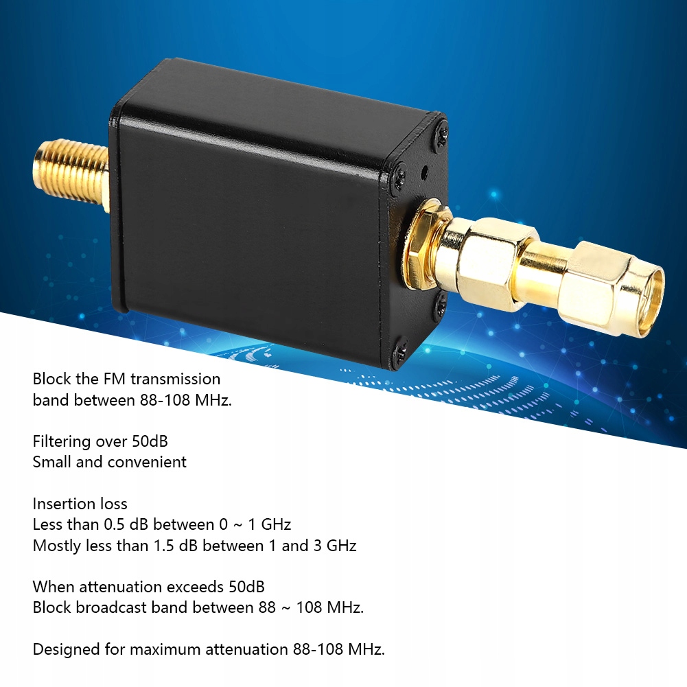 1. Фільтр утримання діапазону може блокувати діапазон FM-передачі в діапазоні 88-108 МГц, це практично та корисно. 2. Коли загасання перевищує 50 дБ, смуга частот, що передається, блокується в діапазоні 88 ~ 108 МГц. 3.FM-фільтр може бути маленьким і зручним, а його якість гарантована, ви можете використовувати його з упевненістю. 4. Розроблено для максимального ослаблення 88~108 МГц, а максимальне загасання між точкою нахилу 3 дБ становить 76 МГц і 122 МГц. 5. Внесені втрати становлять менше 0,5 дБ у діапазоні від 0 до 1 ГГц і зазвичай менше 1,5 дБ у діапазоні від 1 до 3 ГГц.