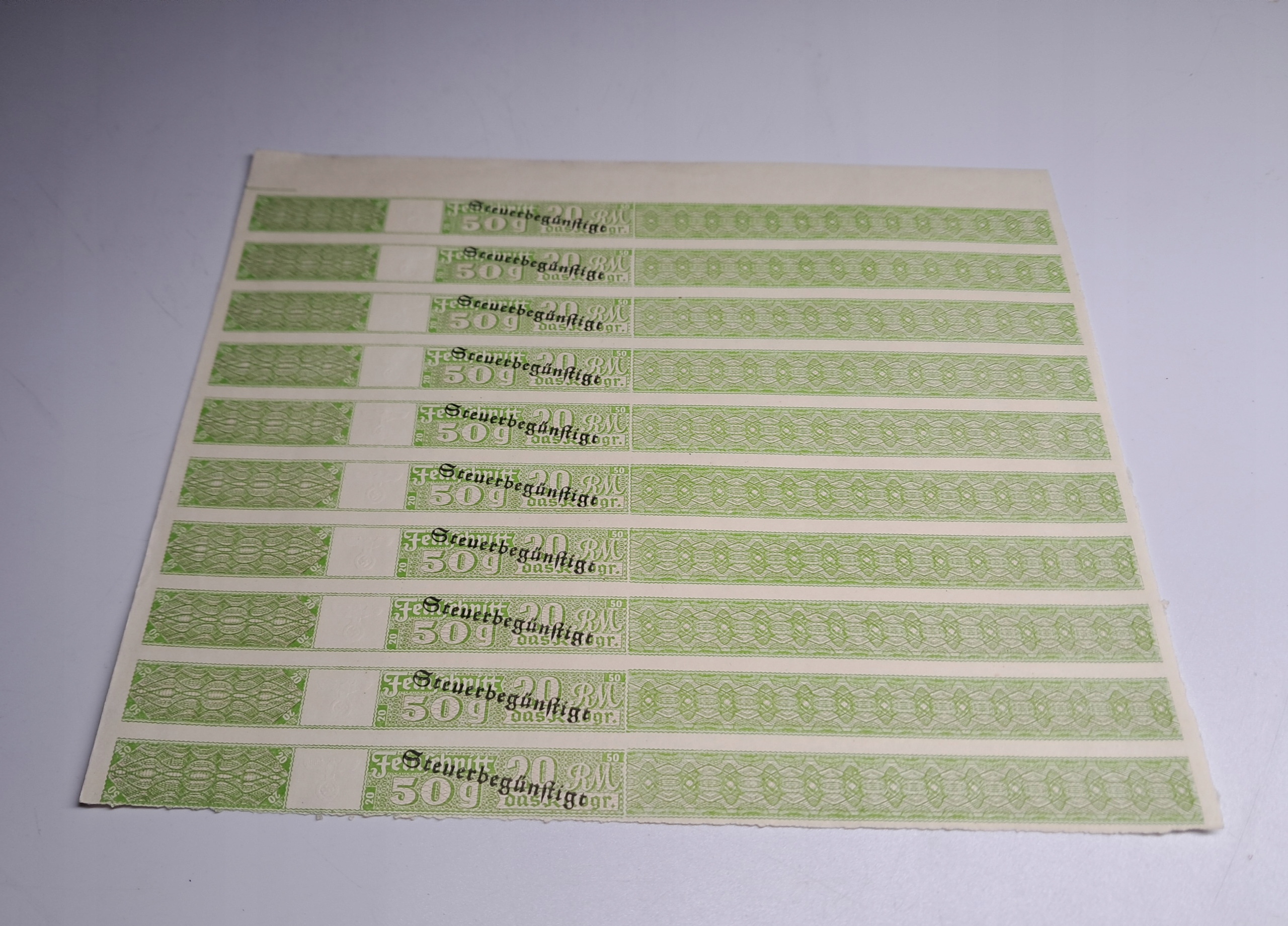 Бандерола німецький акциз з Другої світової війни. Блок