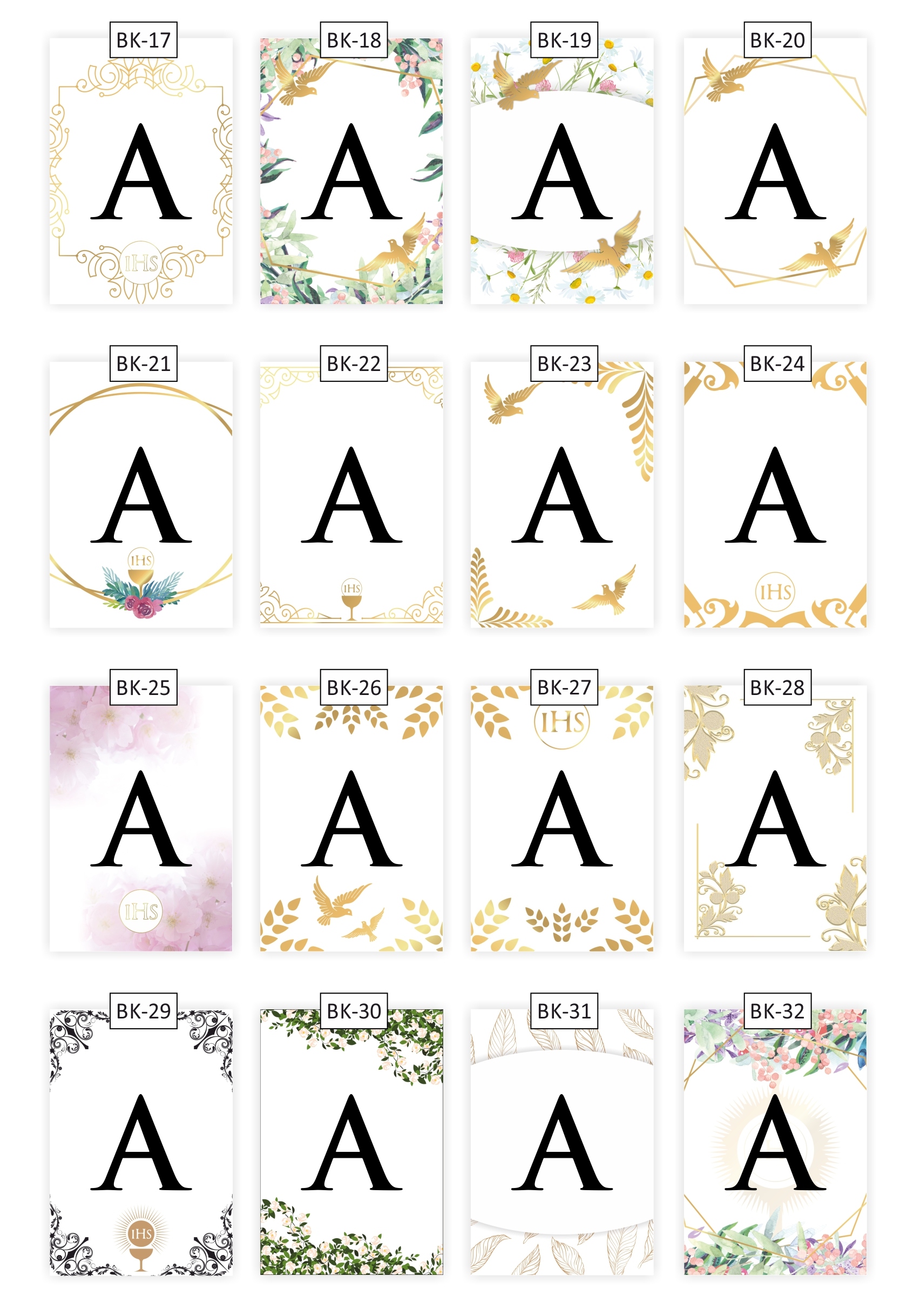 - Кількість елементів у наборі: залежно від довжини імені, разом максимум 25 карт Разом з написом та Святою Причастям (до 11 букв)