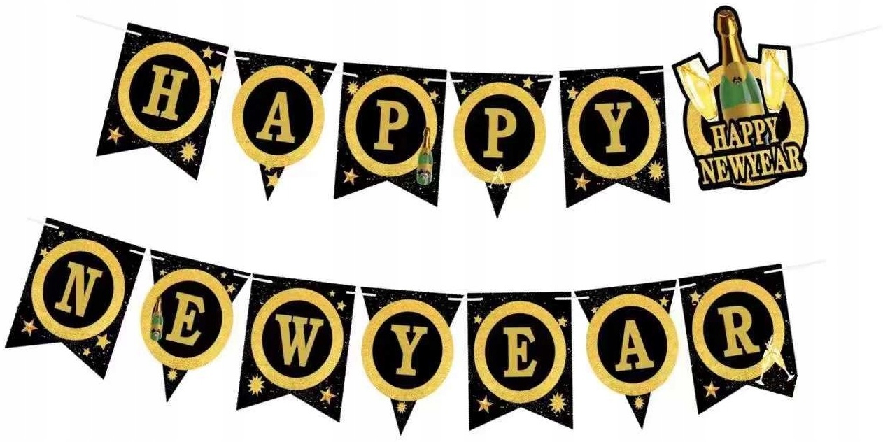 З новим роком банер, зроблений з чорного паперу з золотими літерами.