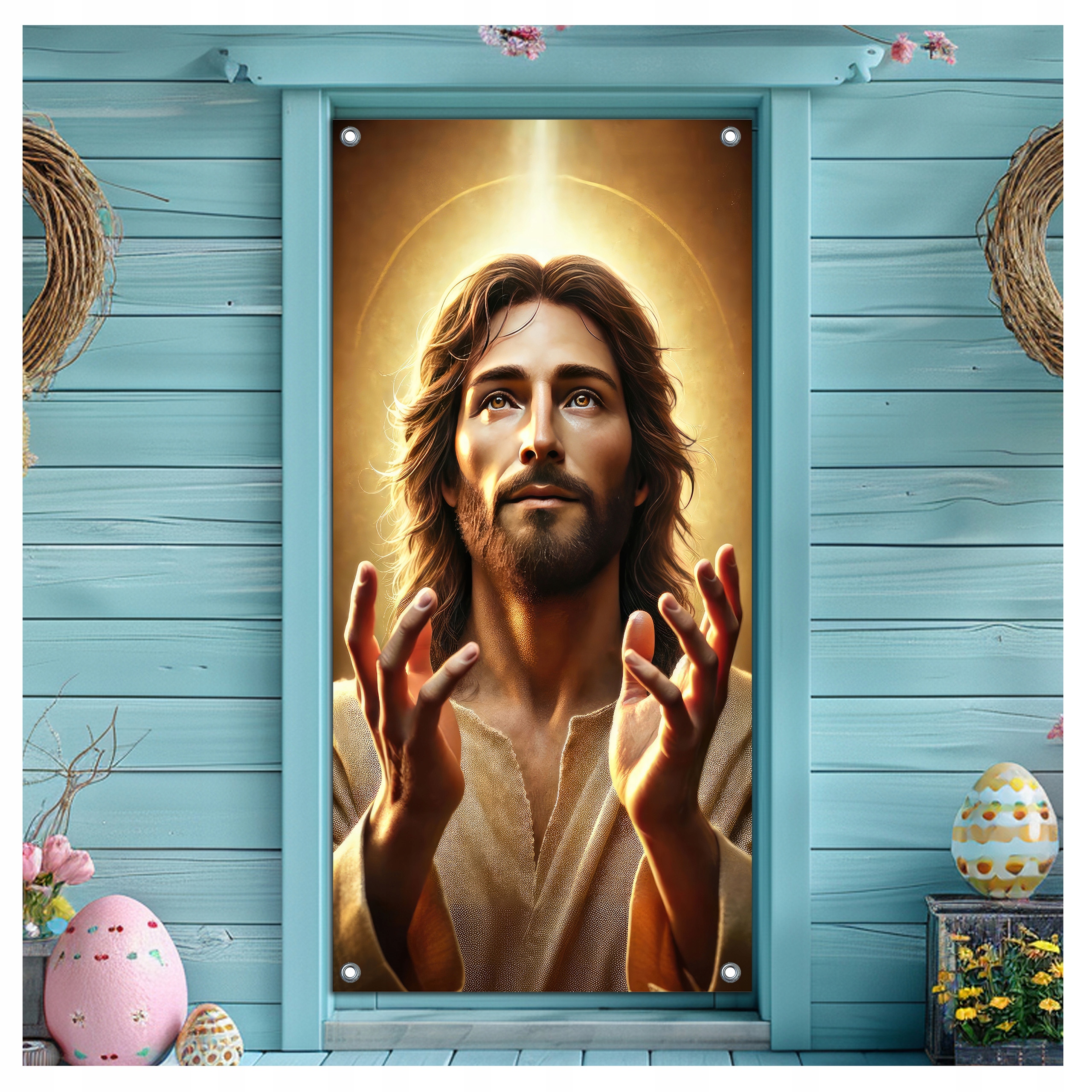 Різдвяний банер на дверях - це унікальне доповнення, яке негайно вводить теплу та радісну атмосферу Різдва у ваш будинок. Створіть унікальну атмосферу для Великодня завдяки прекрасному банеру на дверях з презентацією сцен з життя Ісуса Христа. Цей надзвичайний продукт - це не лише прикраса, але й глибоке духовне послання, яке підкреслює суть Великодня.