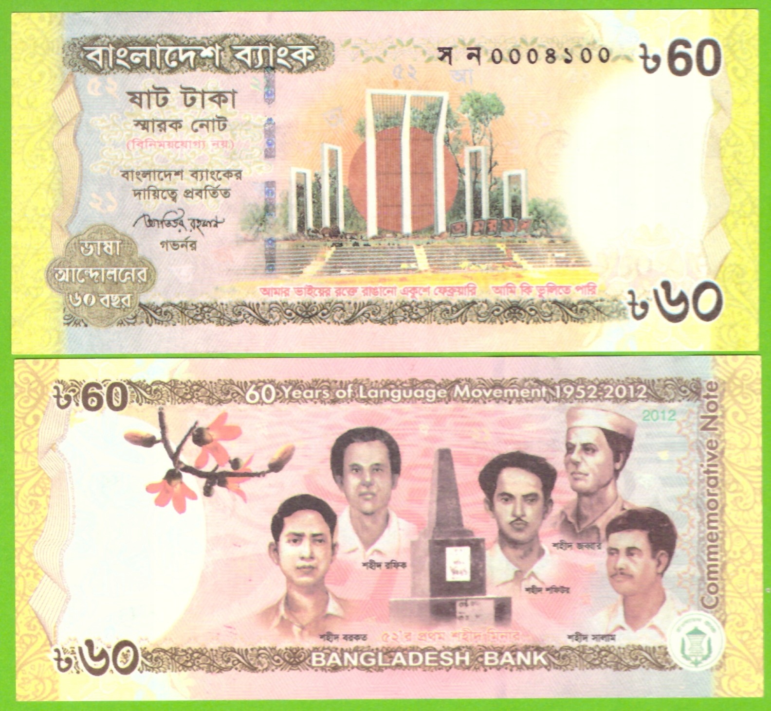 BANGLADESZ 60 TAKA 2012 P-61 UNC OKOLICZNOŚCIOWY
