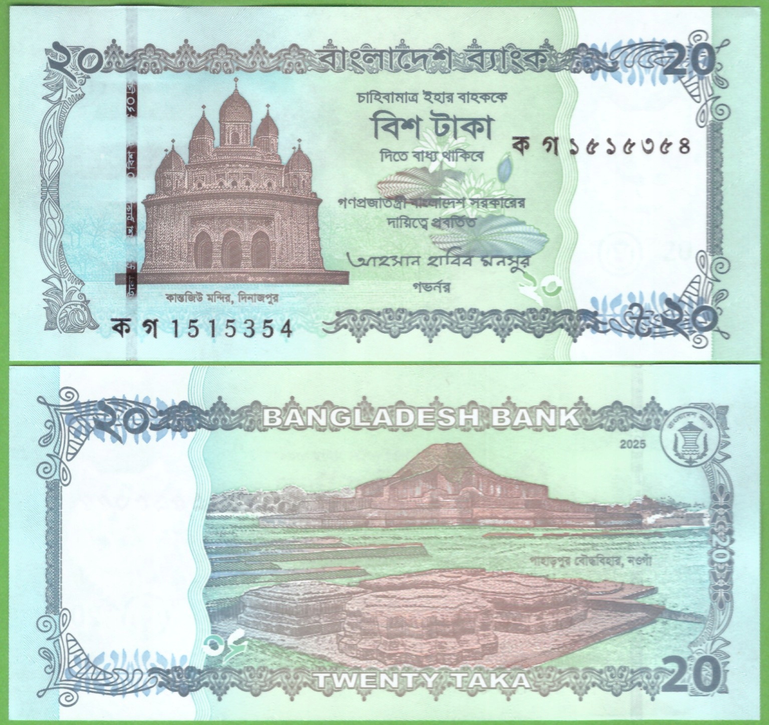 БАНГЛАДЕШ 20 TAKA 2025 P-W77 UNC НОВИЙ ШАБЛОН