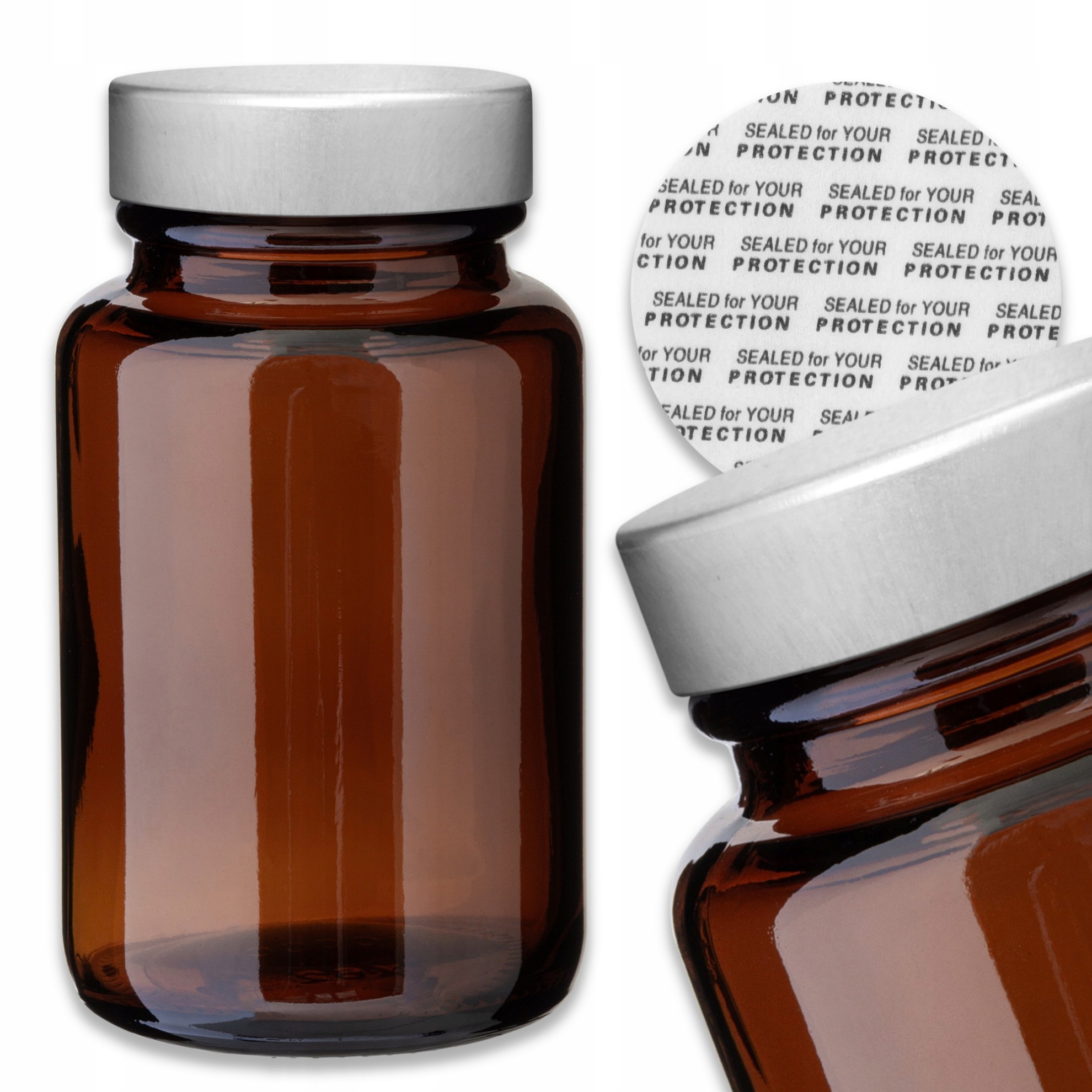 БАНКА СКЛЯНА КОРИЧНЕВА 100 МЛ ЗІ СРІБНОЮ КРИШЕЧКОЮ UNISHELL PHARMA 38/400