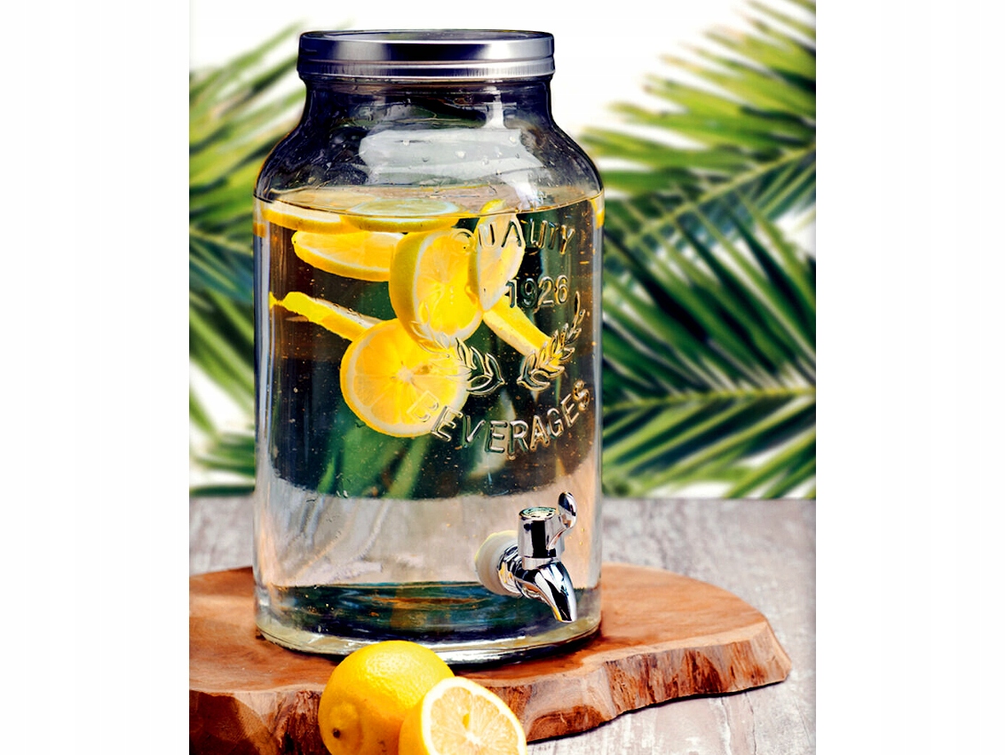 - Скляна банка з краном - ідеально підходить як атракціон на пікніку, весіллі чи барбекю