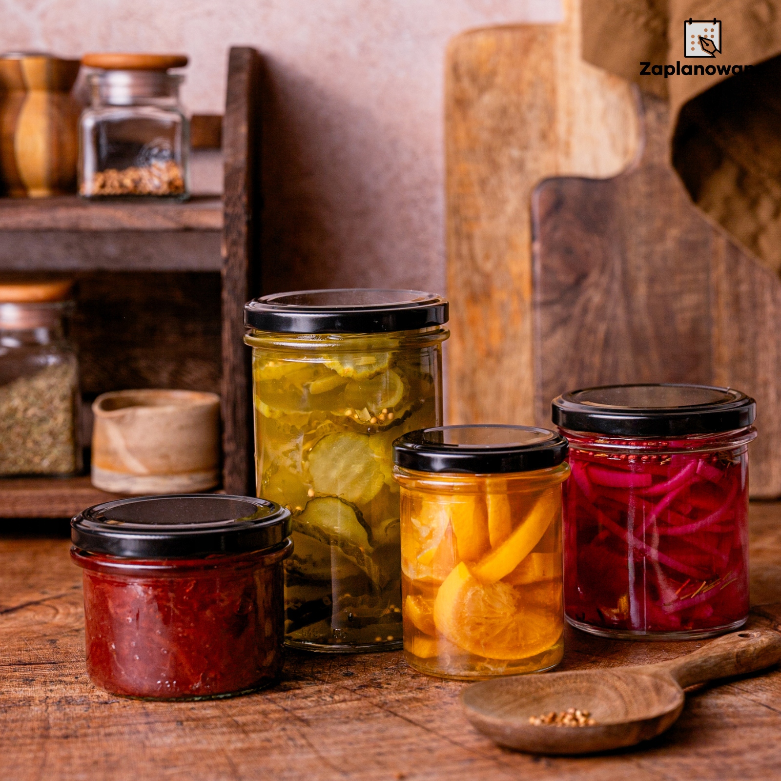 ⭐ 350 мл скляної банки з чорною кришкою - простота, функціональність та елегантність