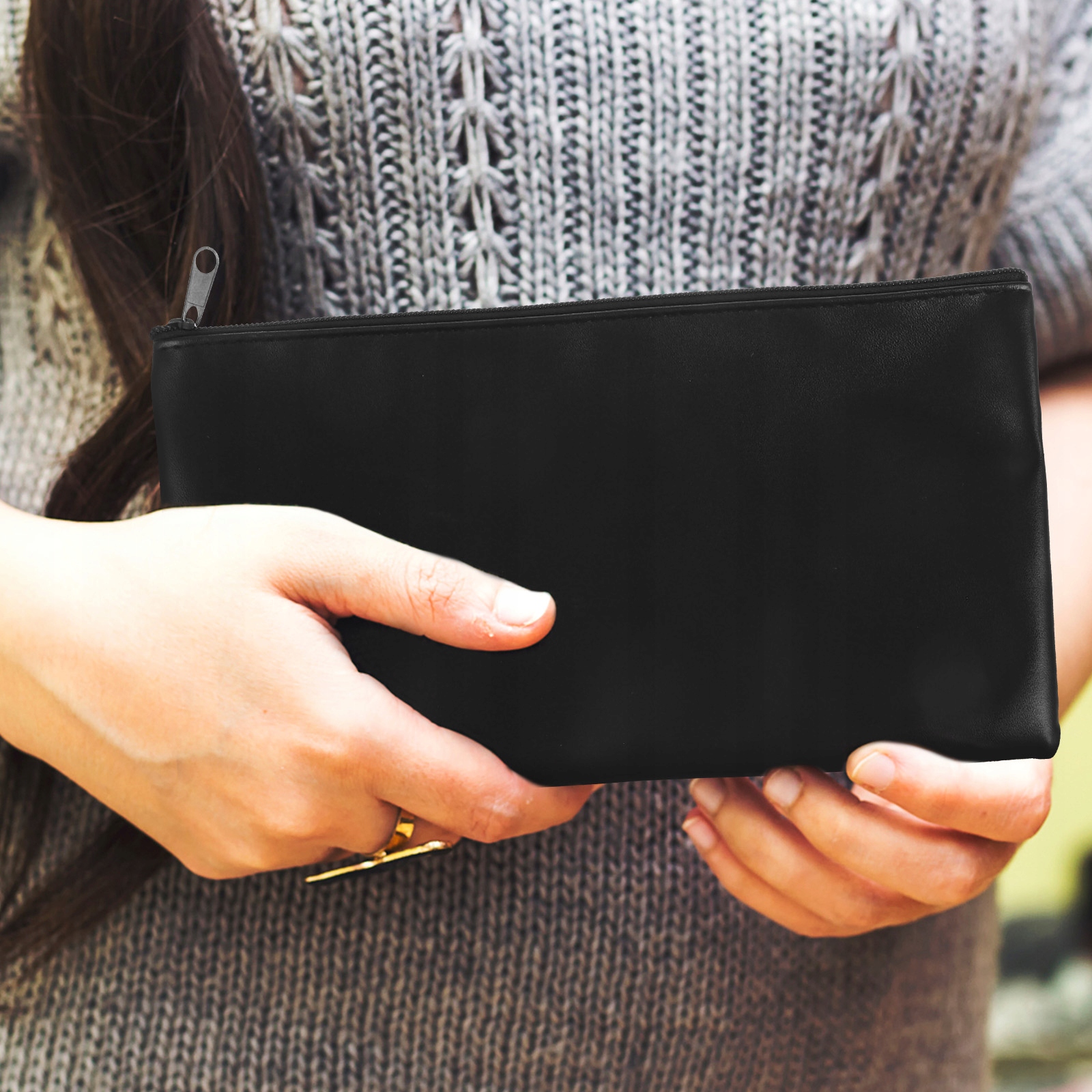 Ця сумка для грошей виготовлена з поліуретанової шкіри. Безпечний, легкий і простий у використанні. Конструкція окремого простору може вмістити готівку, чеки, квитанції тощо. Текстурована шкіряна обробка та міцні блискавки роблять цю сумку для грошей надзвичайно надійною та безпечною. Це найкращий вибір для родини та друзів.