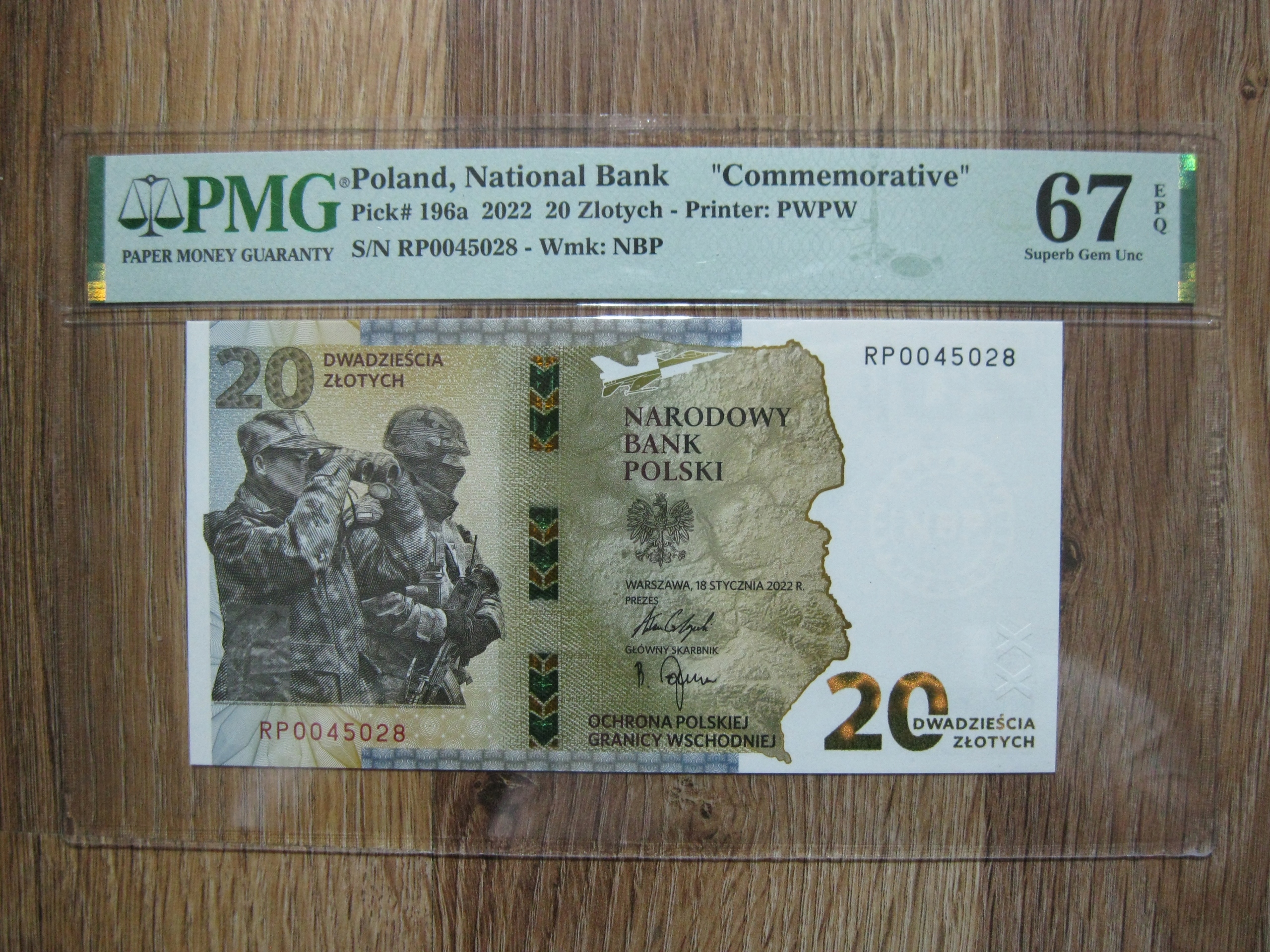 BANKNOT 20 ZŁ 2022 ROK OCHRONA GRANICY GRADING PMG