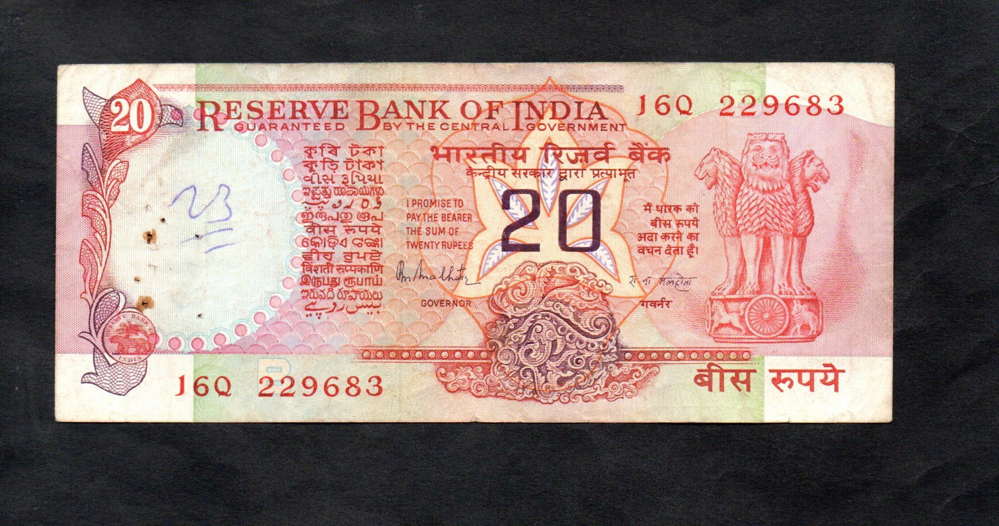 Banknot INDIE -- 20 Rupees