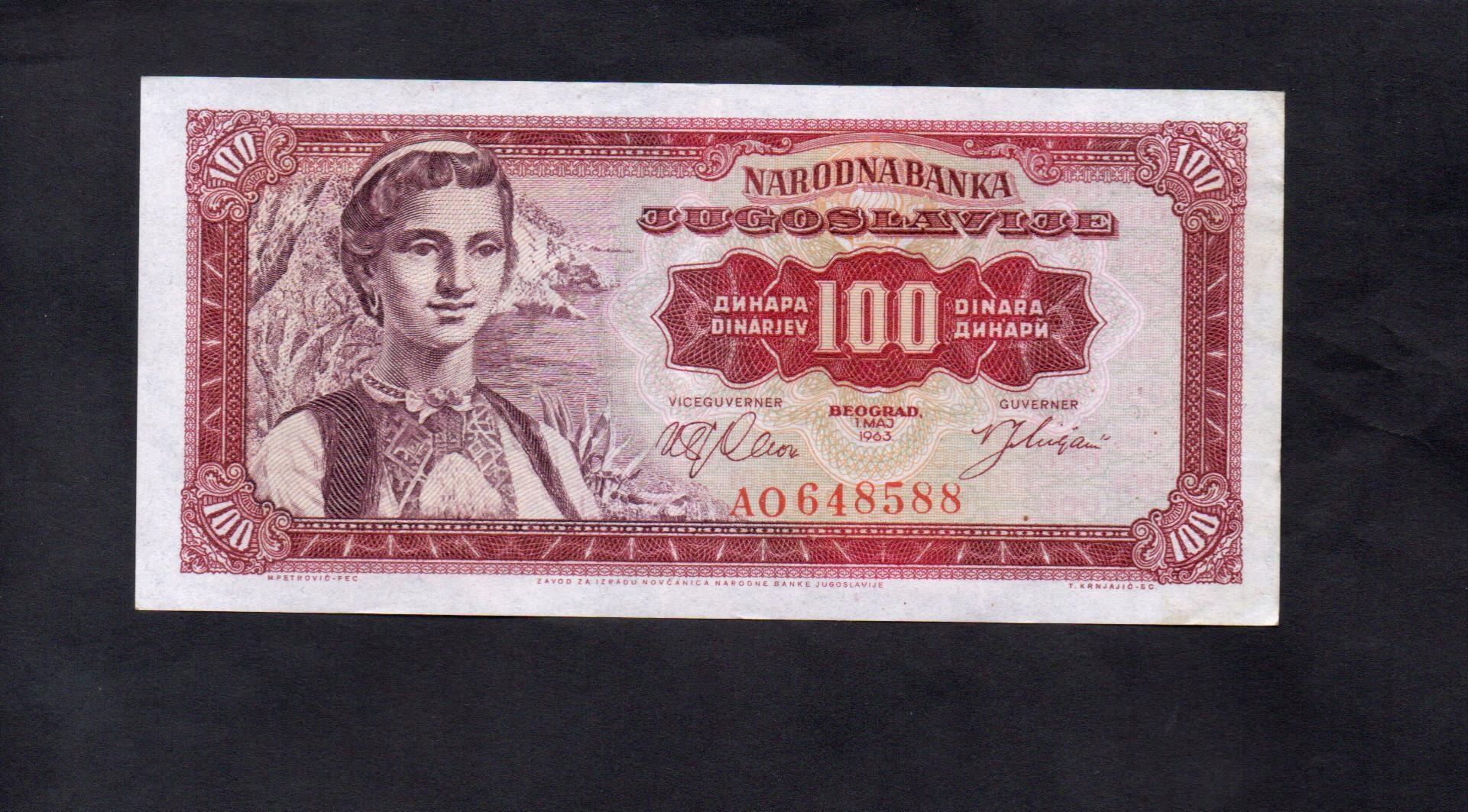 BANKNOT JUGOSŁAWIA -- 100 DINARÓW -- 1963 rok