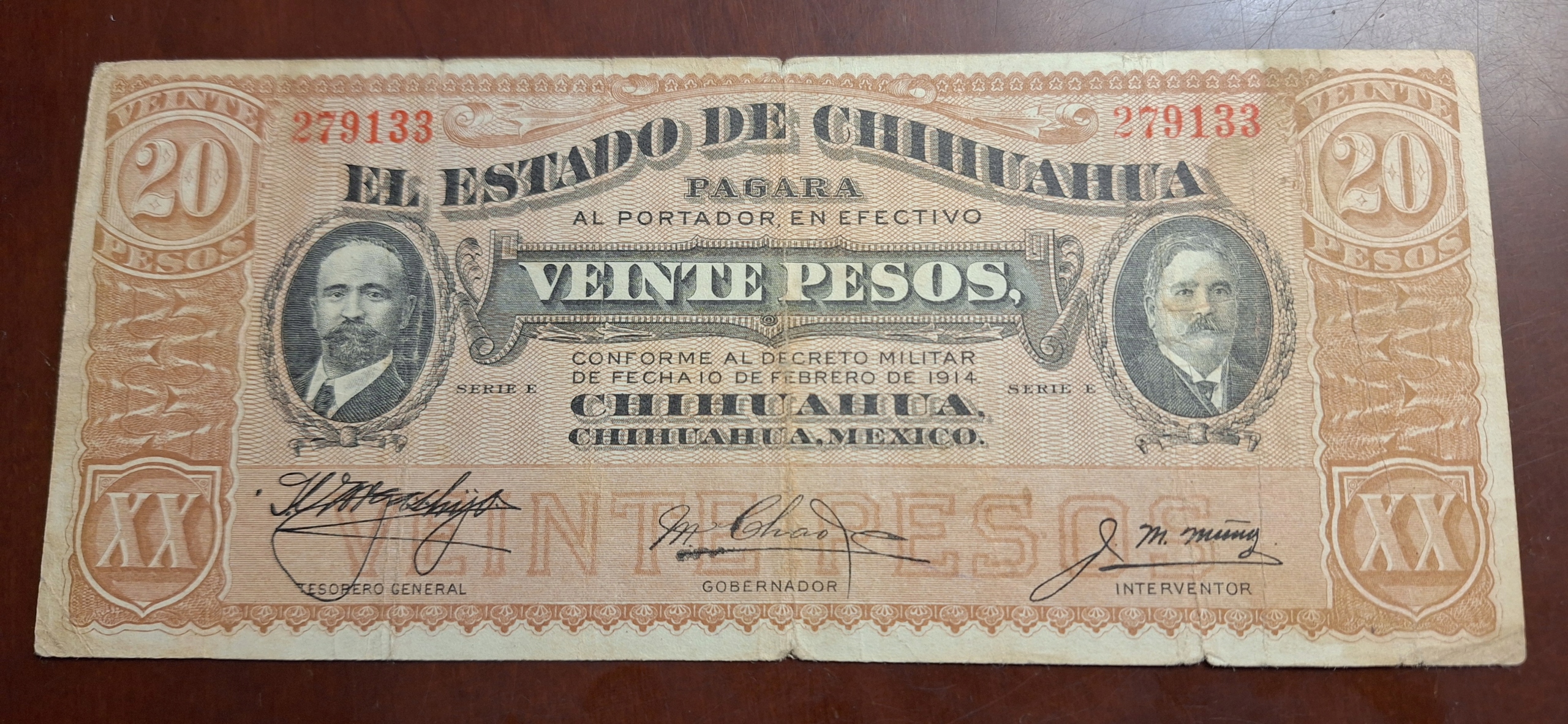 BANKNOT MEKSYK REWOLUCJA TIJUANA 20 PESOS 1915 ROK RZADKI