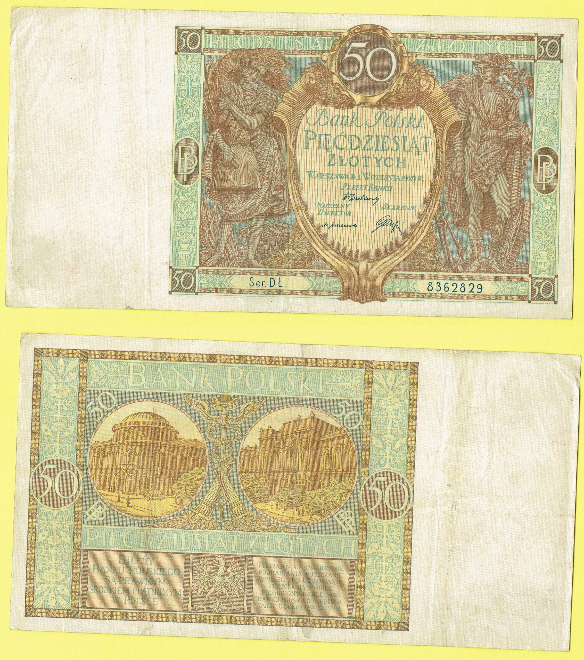 BANKNOT POLSKA 50 ZŁ 1929 R. DŁ