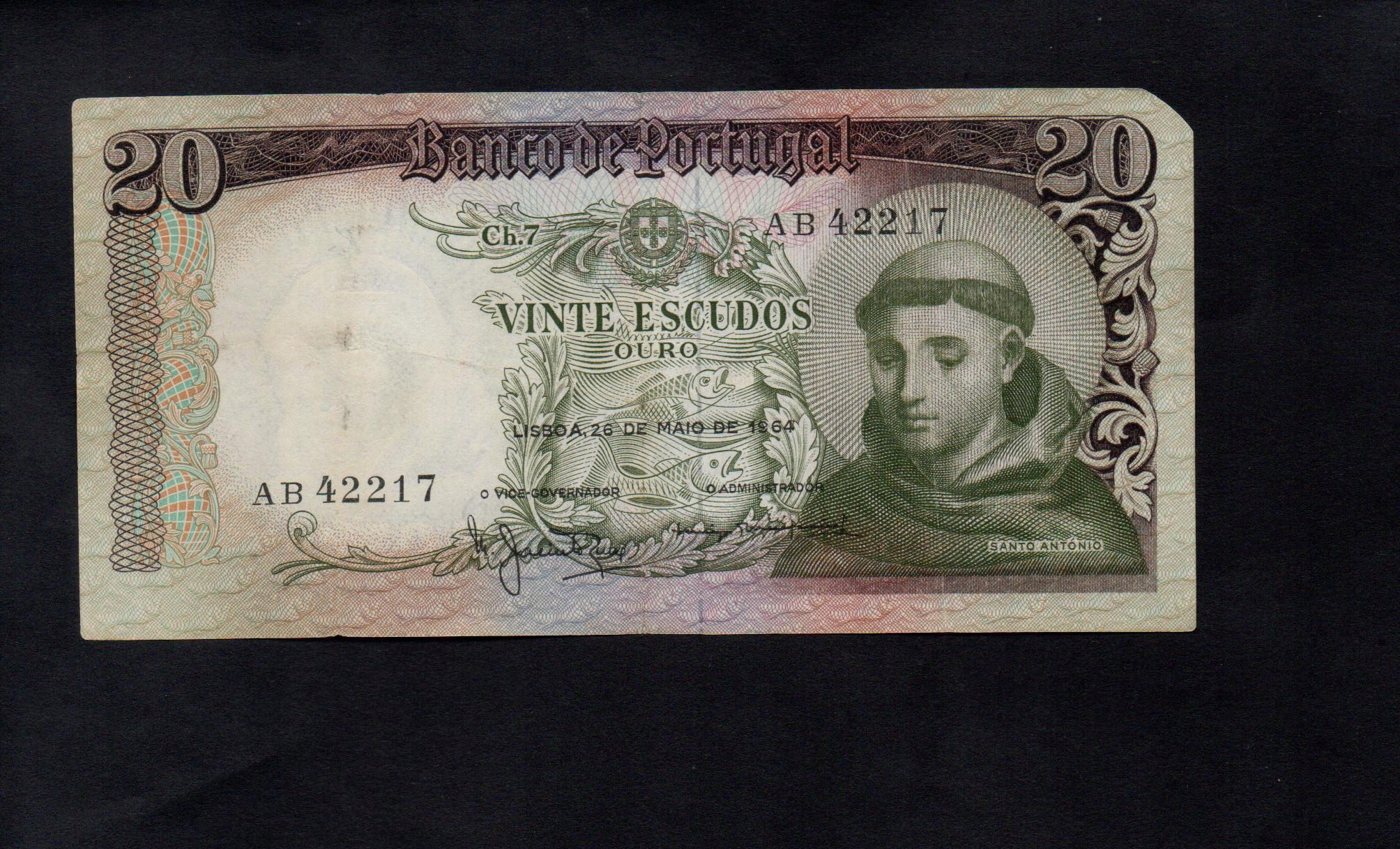 BANKNOT PORTUGALIA -- 20 ESCUDOS -- 1964 rok