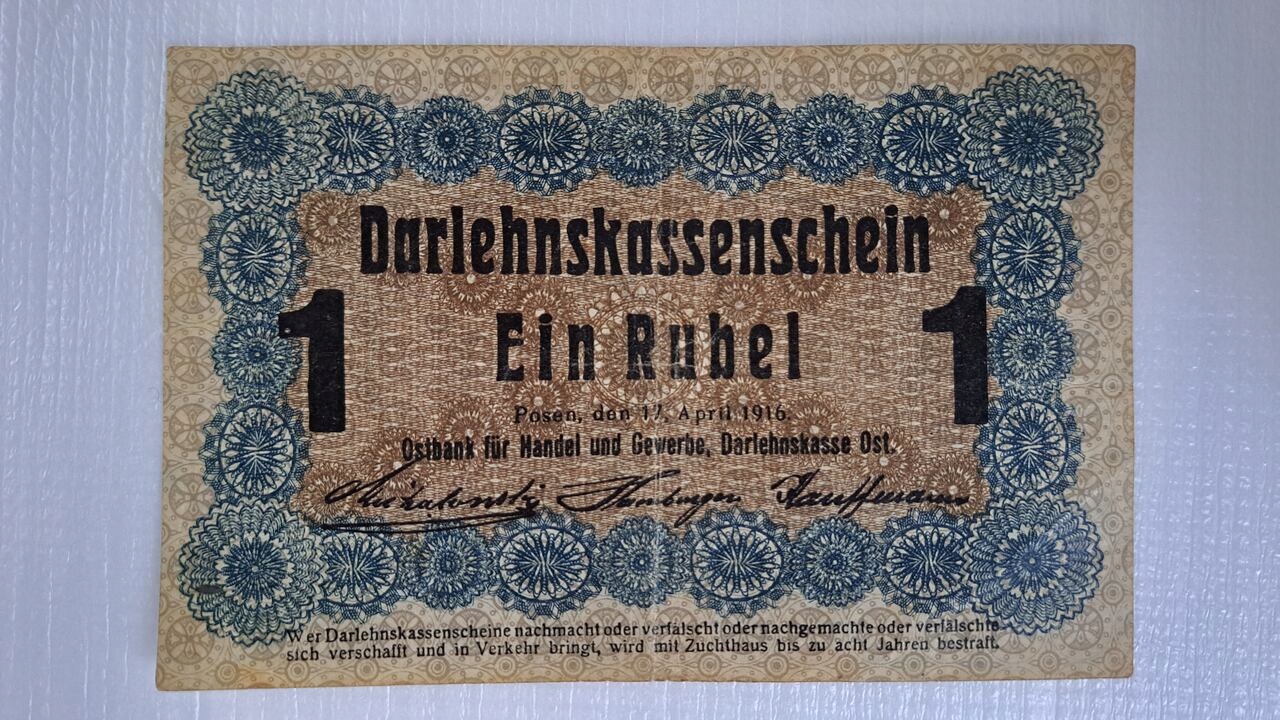 Банкнота номіналом 1 рубль (Ostrubel) 1916 р., Познань,