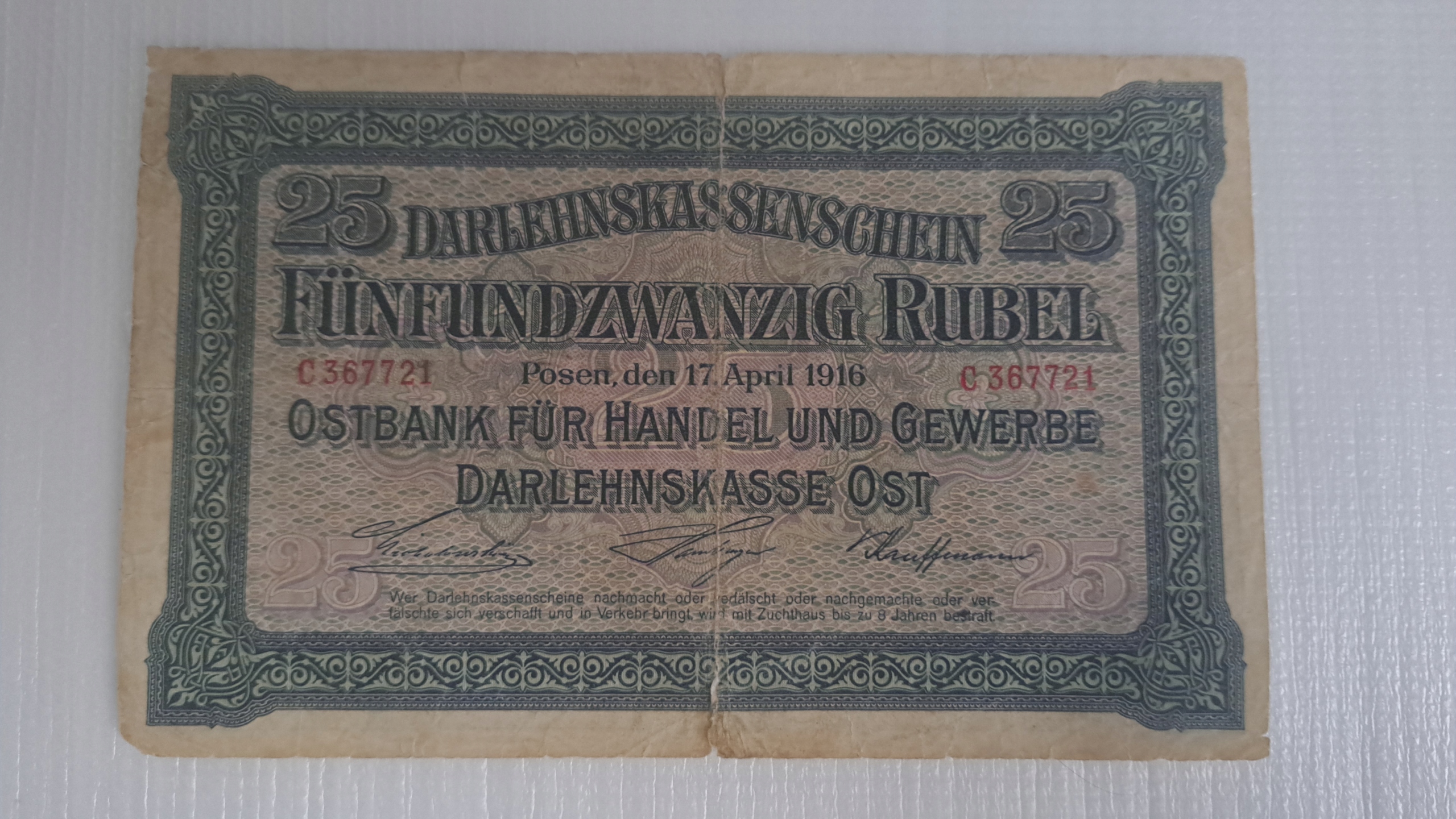 Банкнота POZNAŃ 25 рублів 1916 р.