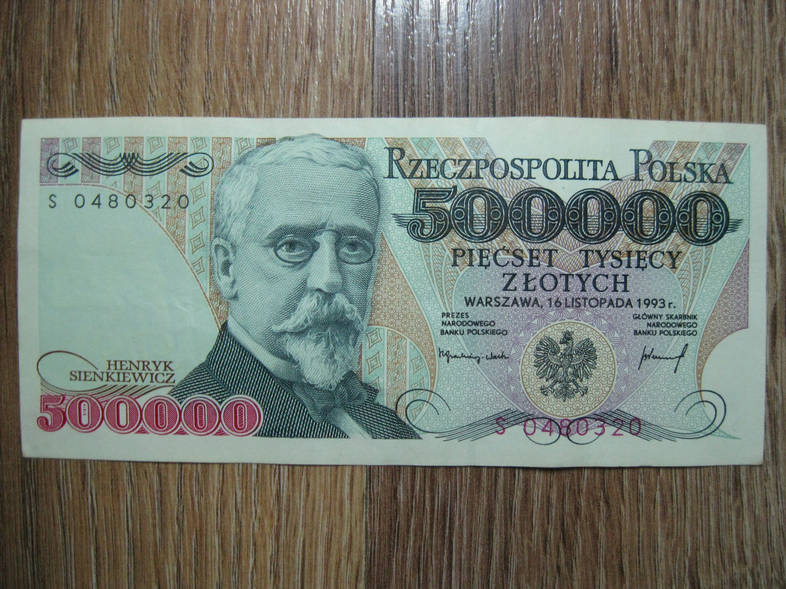 BANKNOT RP 500000 ZŁOTYCH 1993 ROK H. SIENKIEWICZ