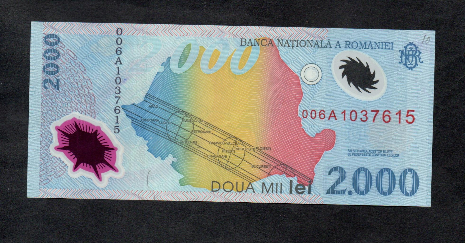 BANKNOT RUMUNIA -- 2000 Lei -- 1999 rok, POLIMER