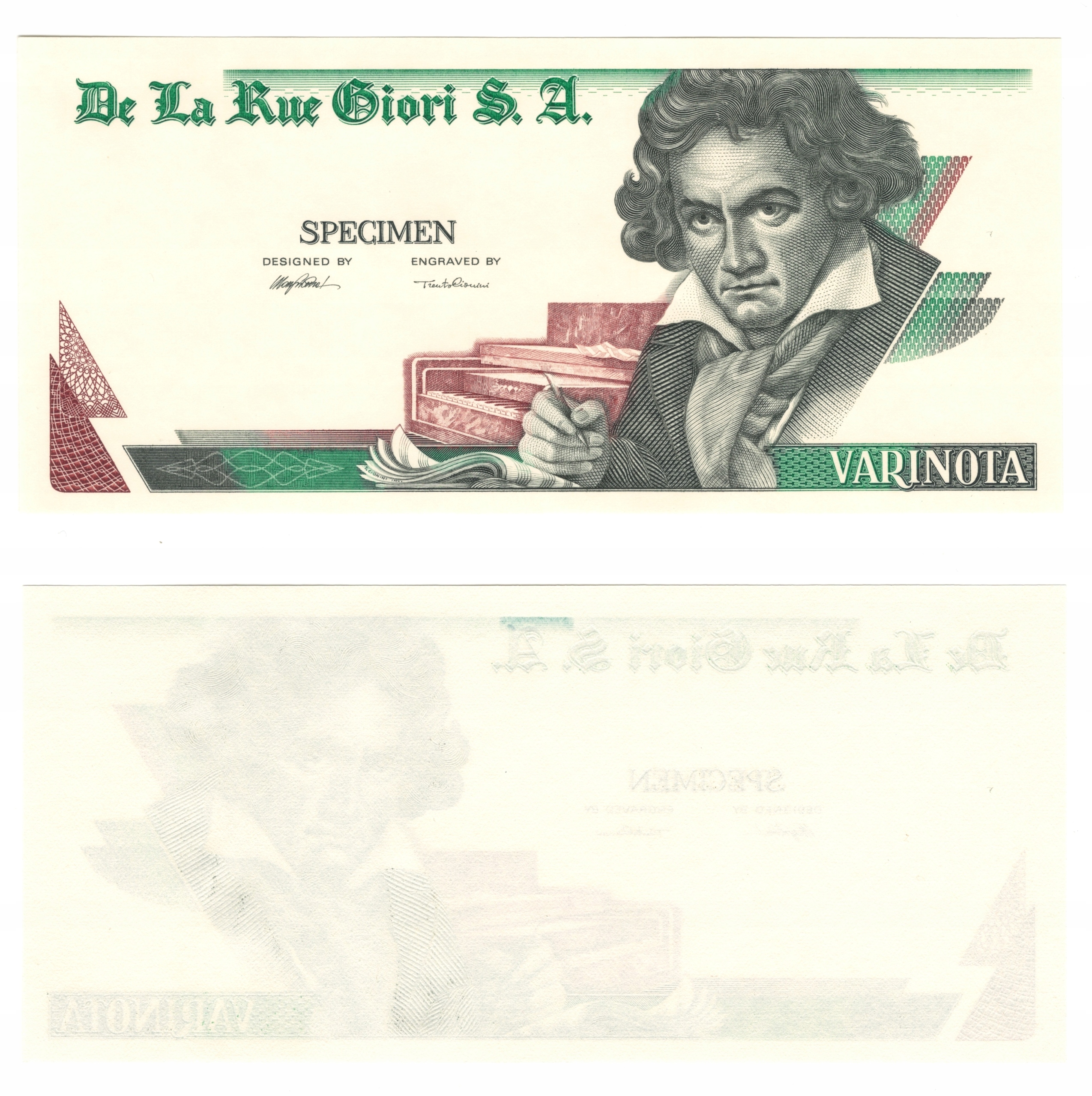 Banknot testowy Beethoven De La Rue Giori S.A.