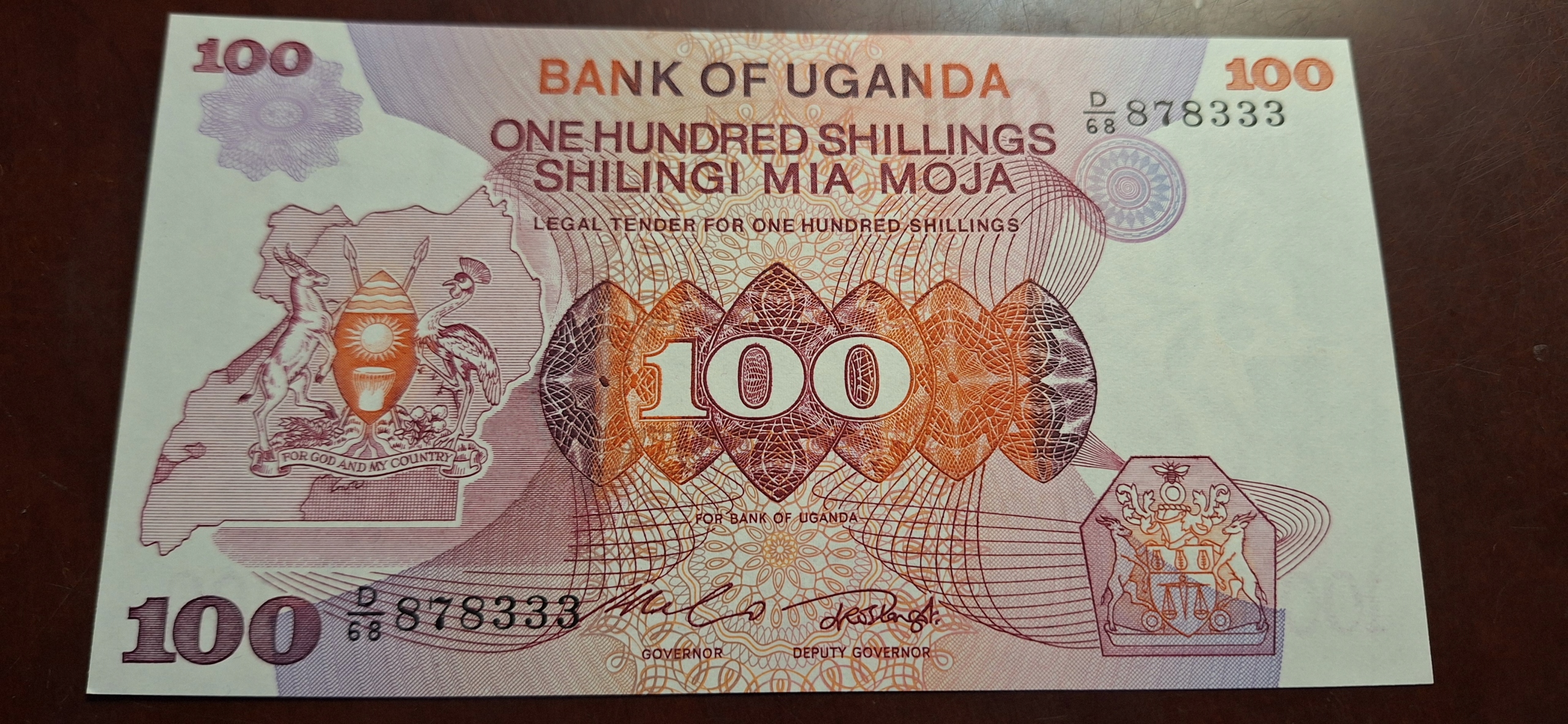 BANKNOT UGANDA 100 SHILINGS 1982 ROK UNC
