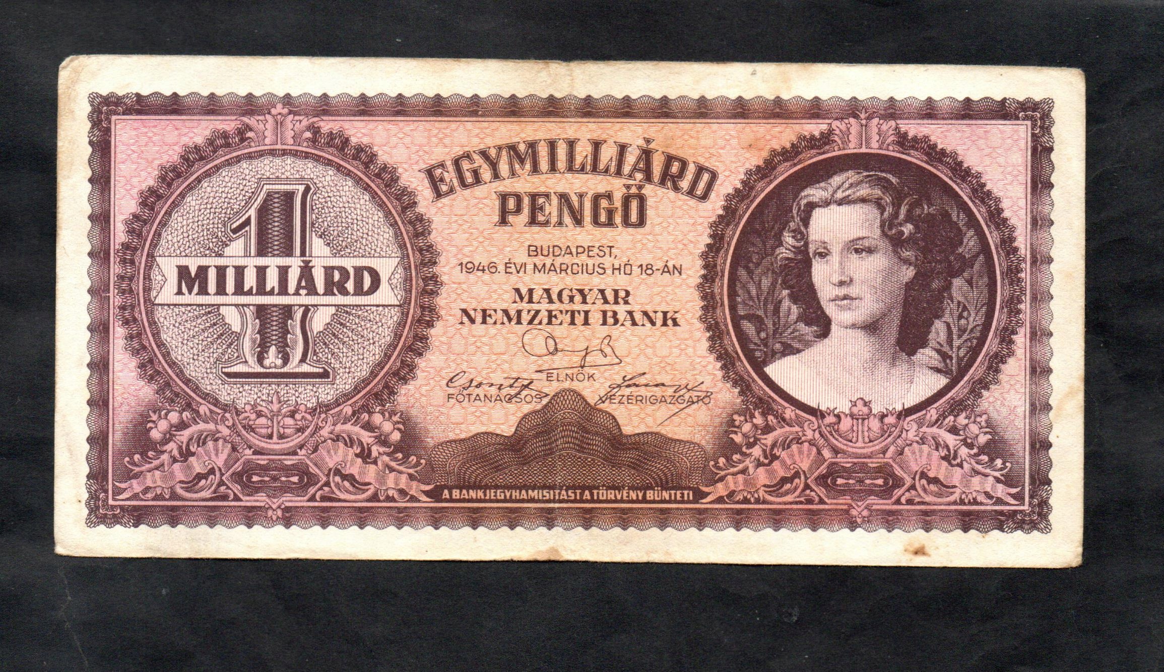 BANKNOT WĘGRY -- 1 miliard pengo -- 1946 rok