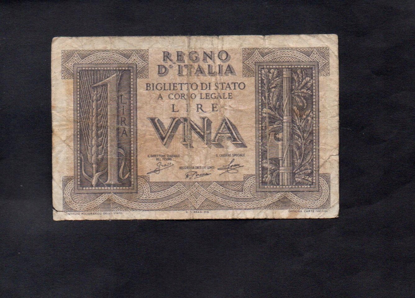 Banknot WŁOCHY -- 1 lir -- 1939 rok