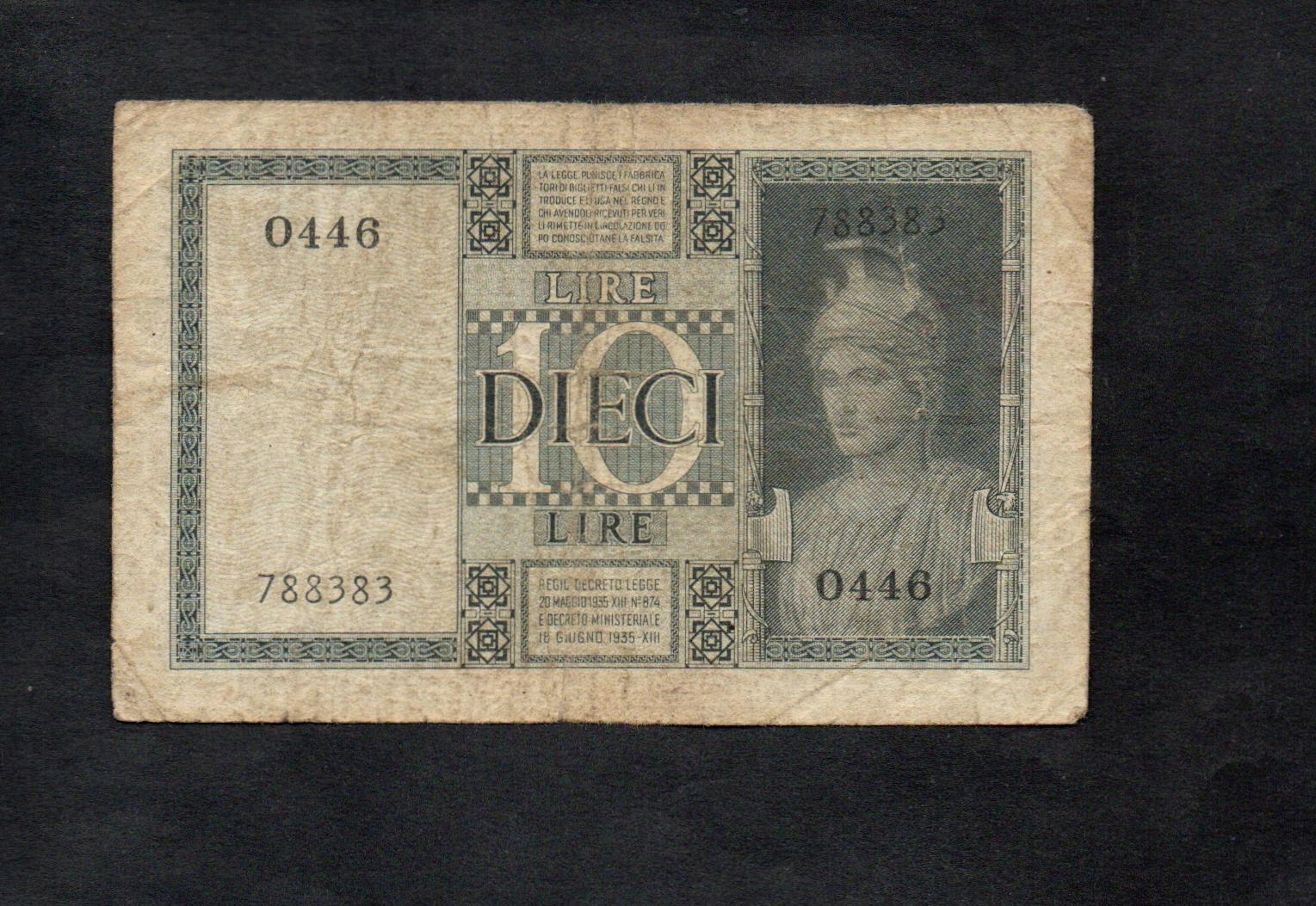 Banknot WŁOCHY -- 10 lirów -- 1939 rok