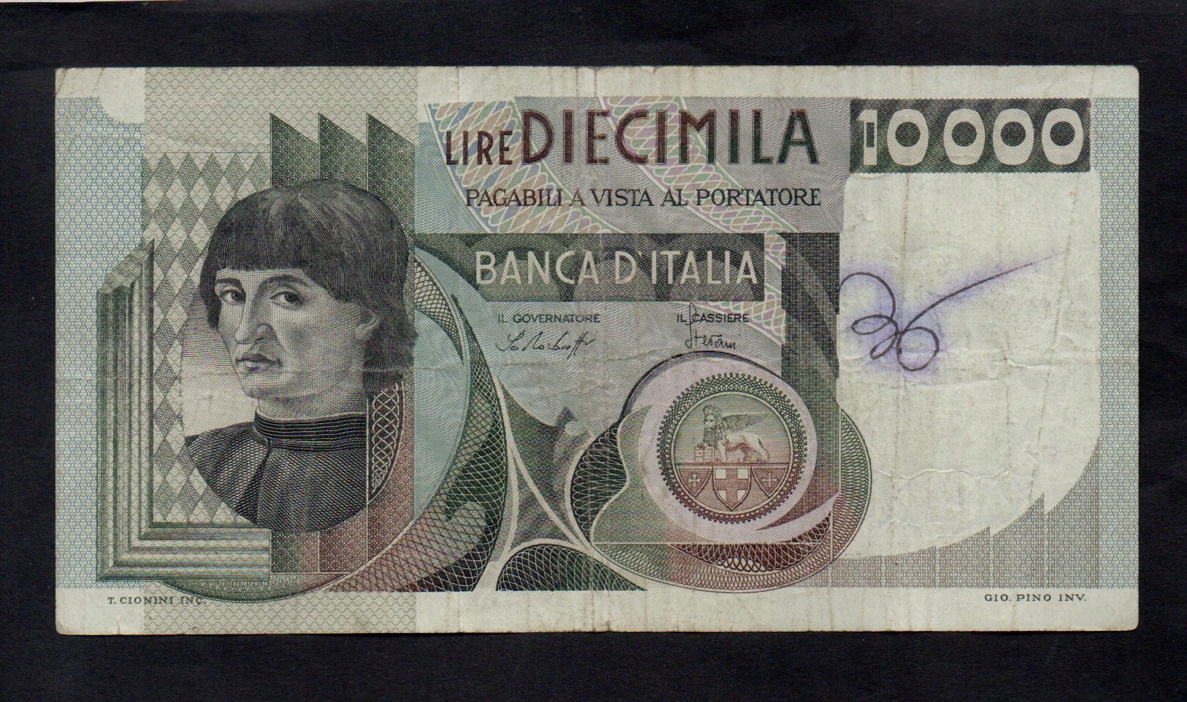 Banknot WŁOCHY -- 10000 lirów -- 1976 rok