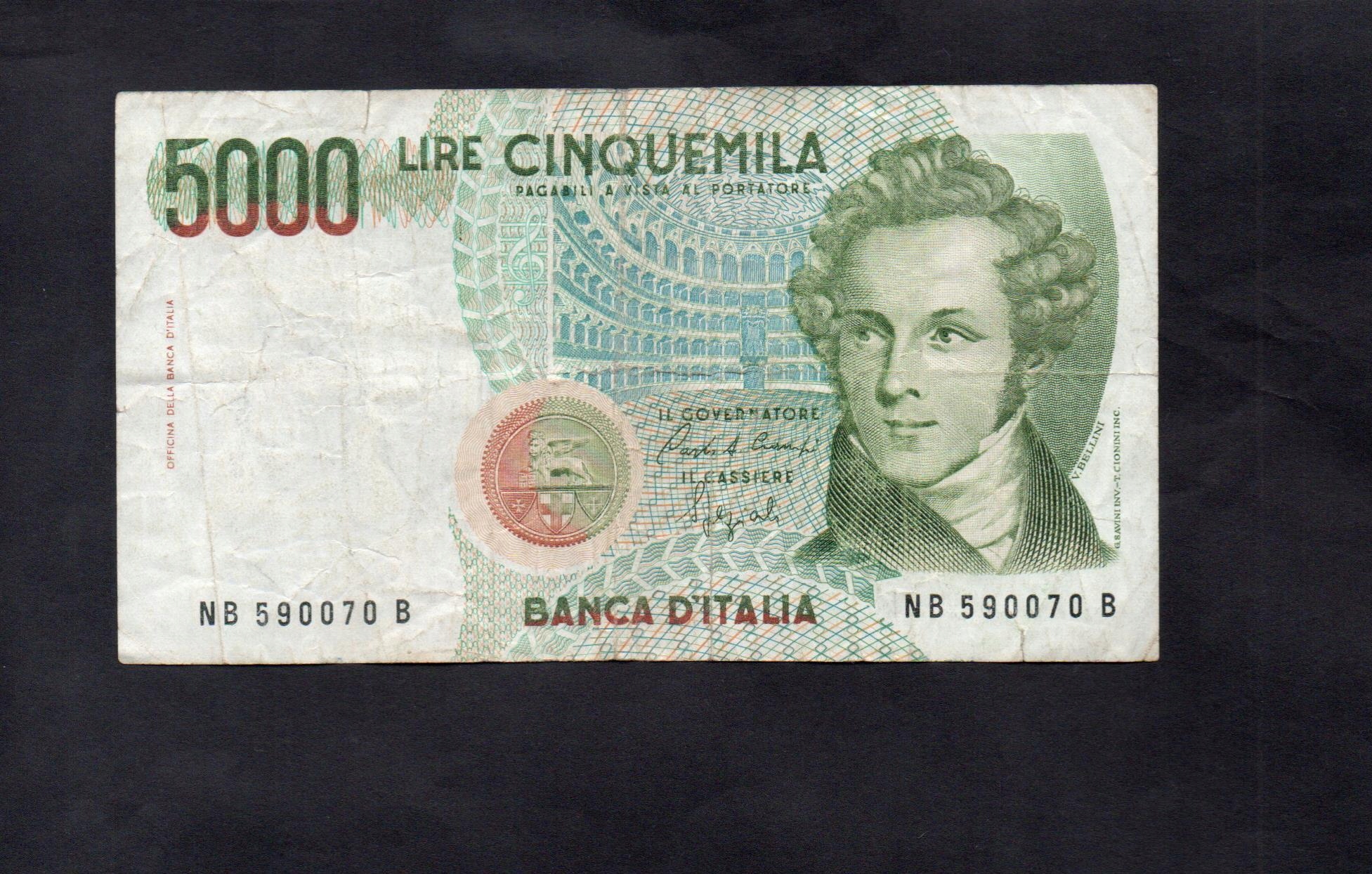 Banknot WŁOCHY -- 5000 lirów -- 1985 rok