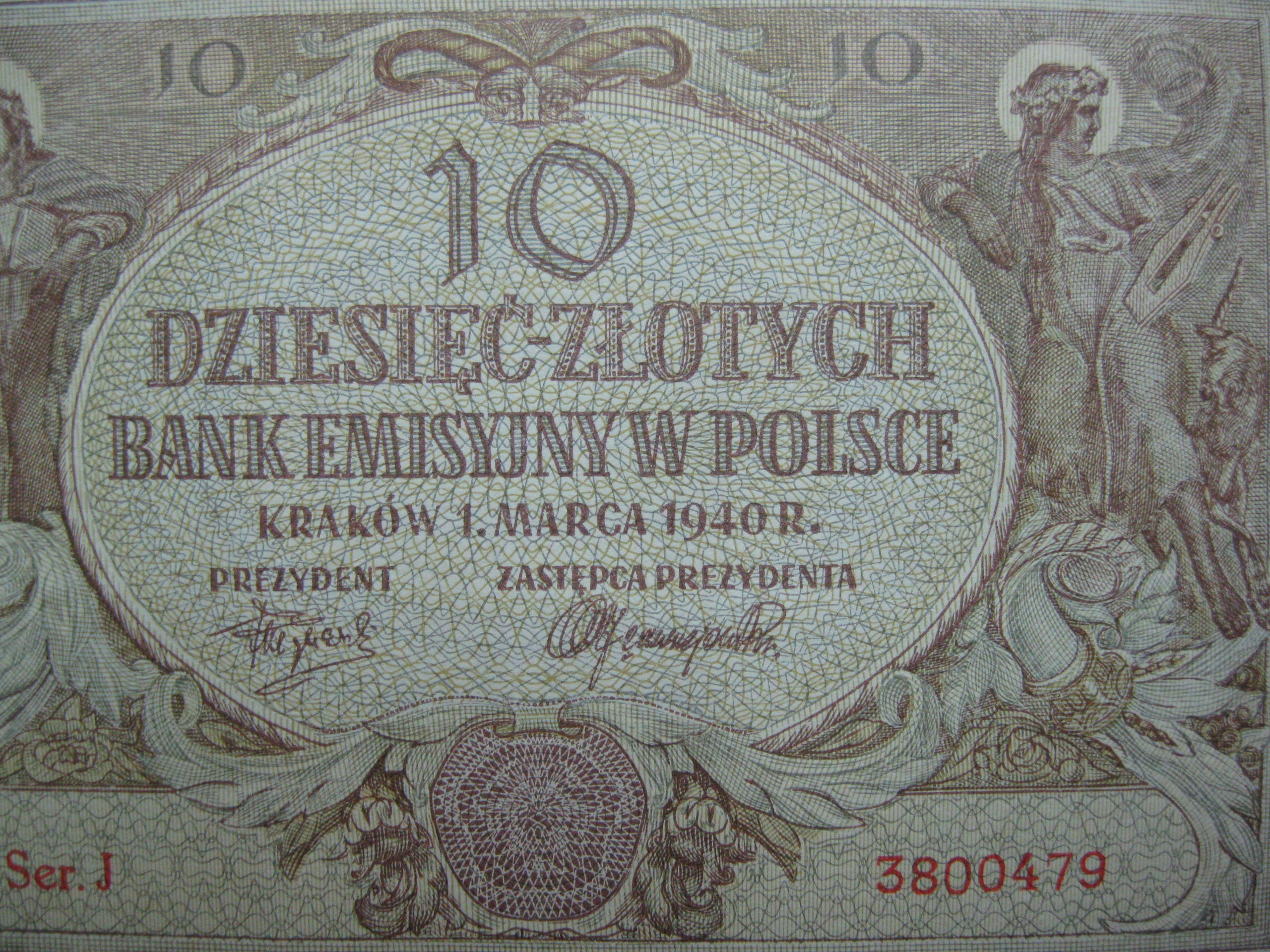 BANKNOT Z OKUPACJI WOJENNEJ 10 ZŁOTYCH 1940 ROK