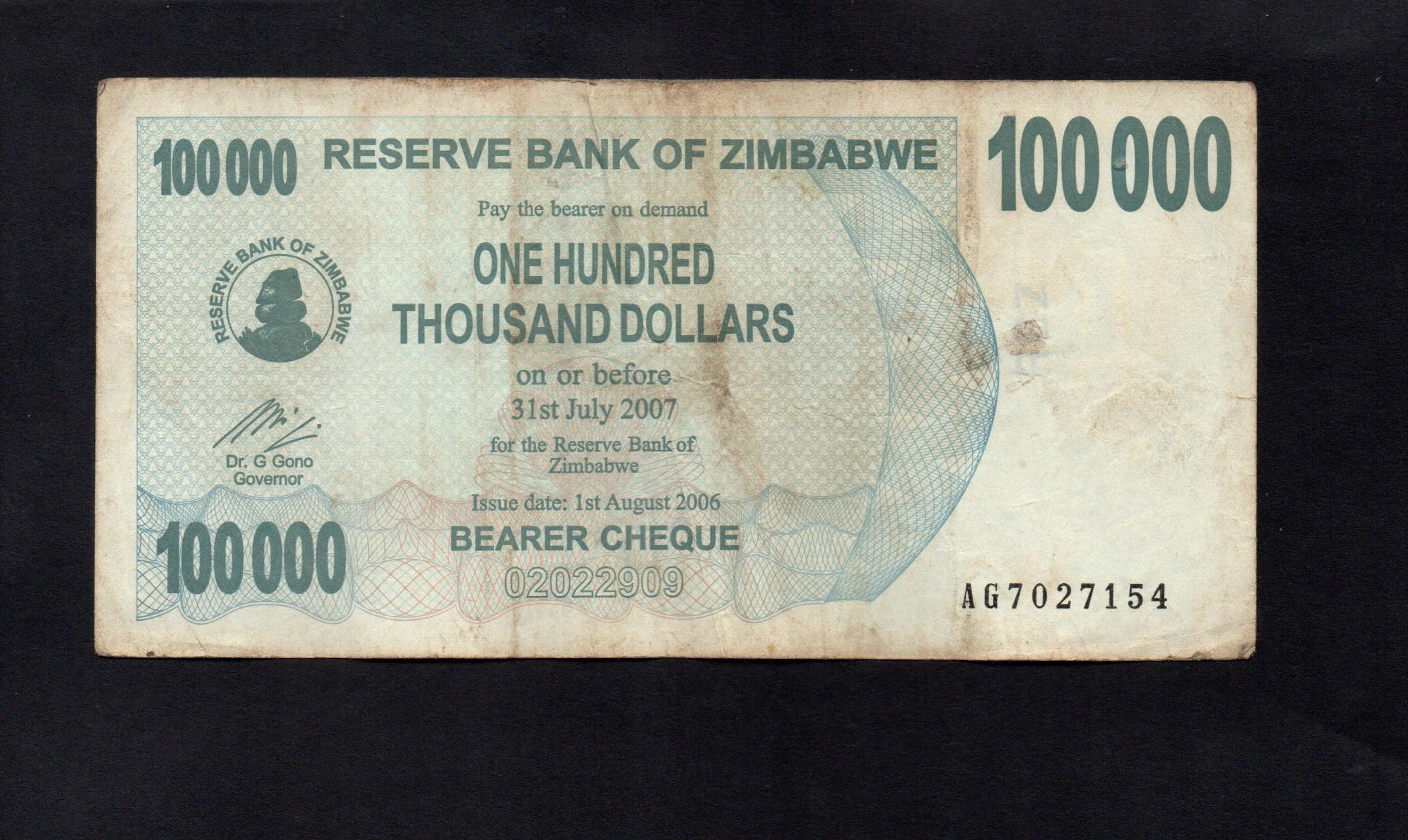 БАНКНОТ ЗІМБАБВЕ - 100 000 доларів - 2006 рік