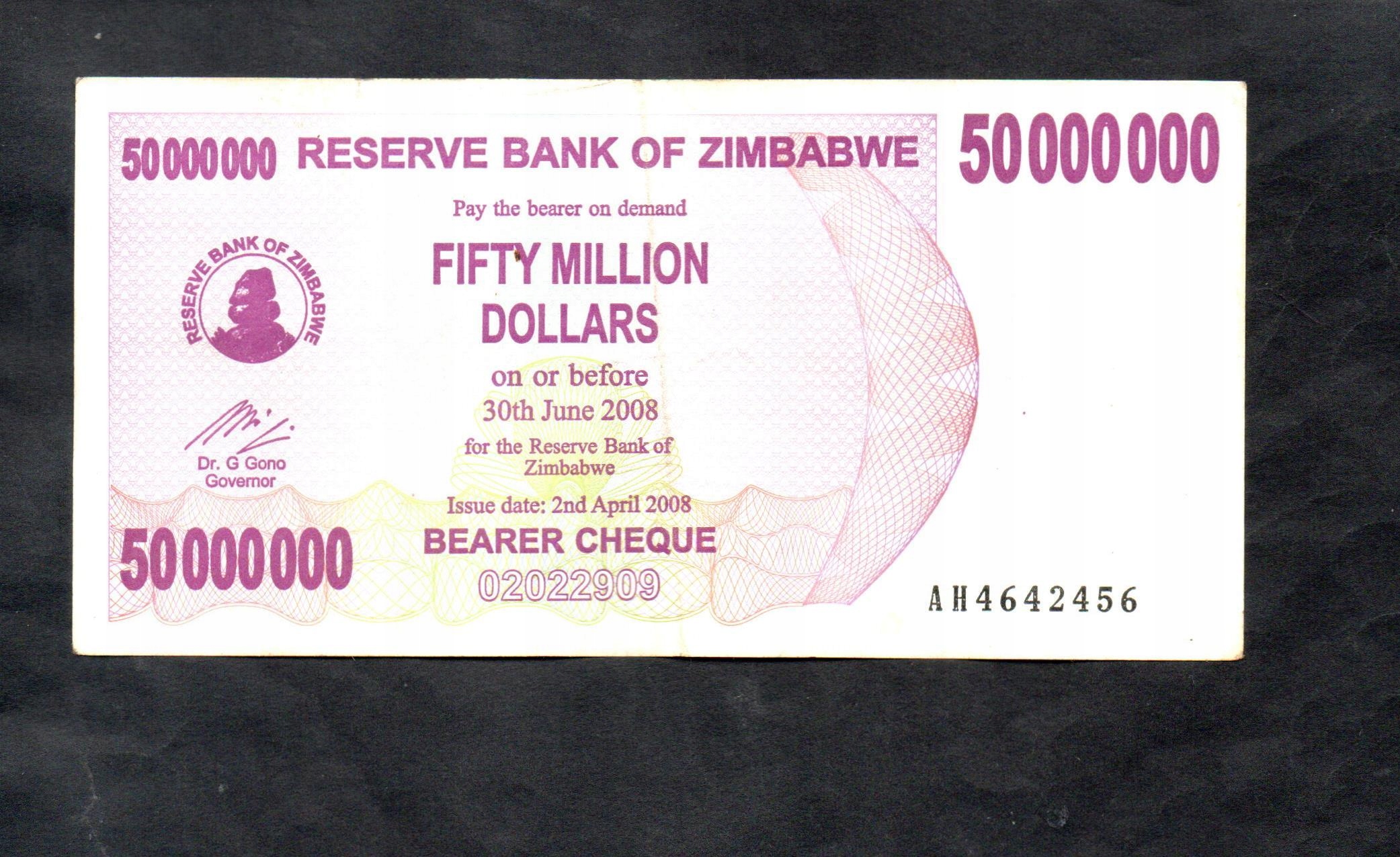 БАНКНОТ ЗІМБАБВЕ - 50 000 000 доларів - 2008 р.