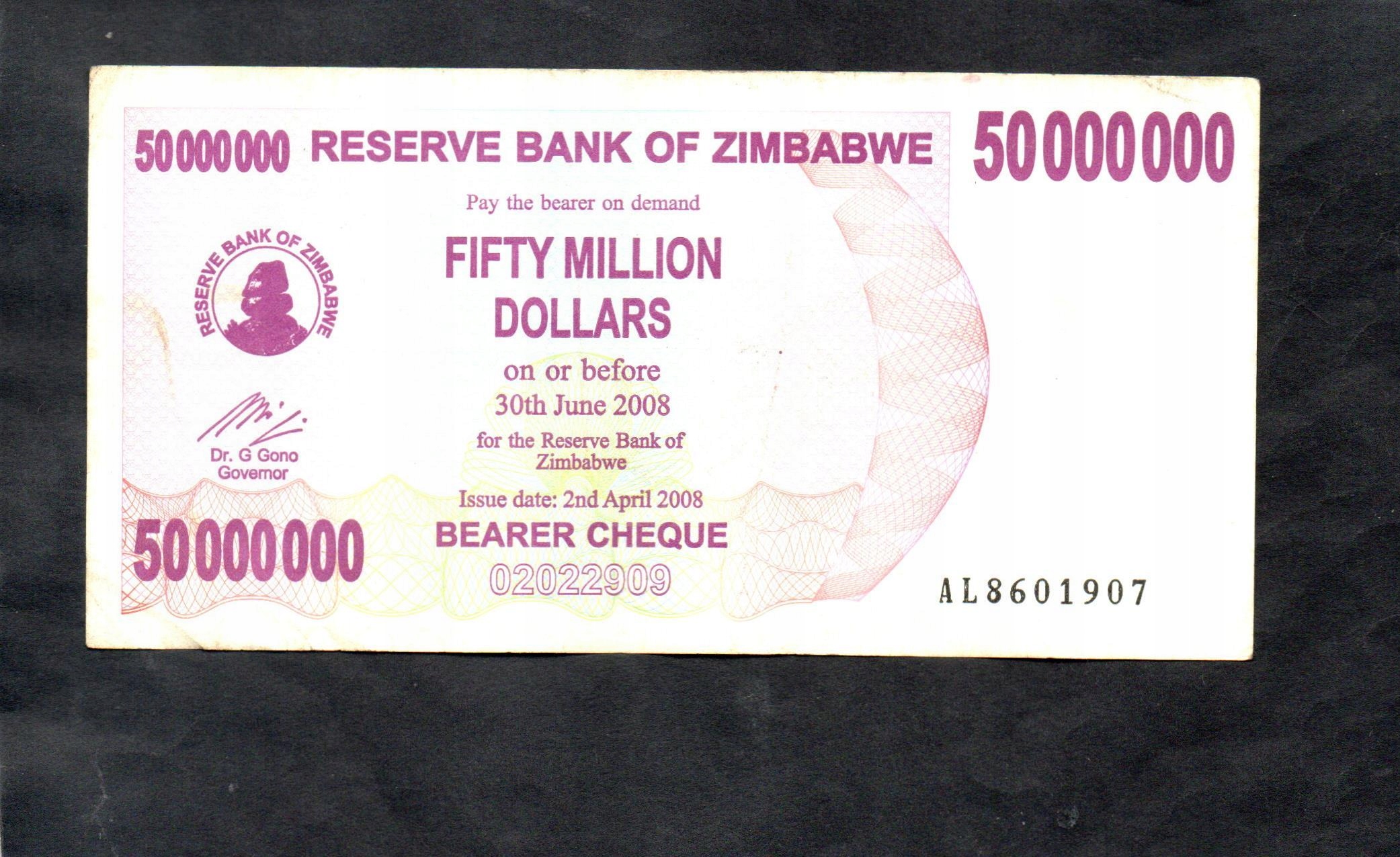 БАНКНОТ ЗІМБАБВЕ - 50 000 000 доларів - 2008 р.