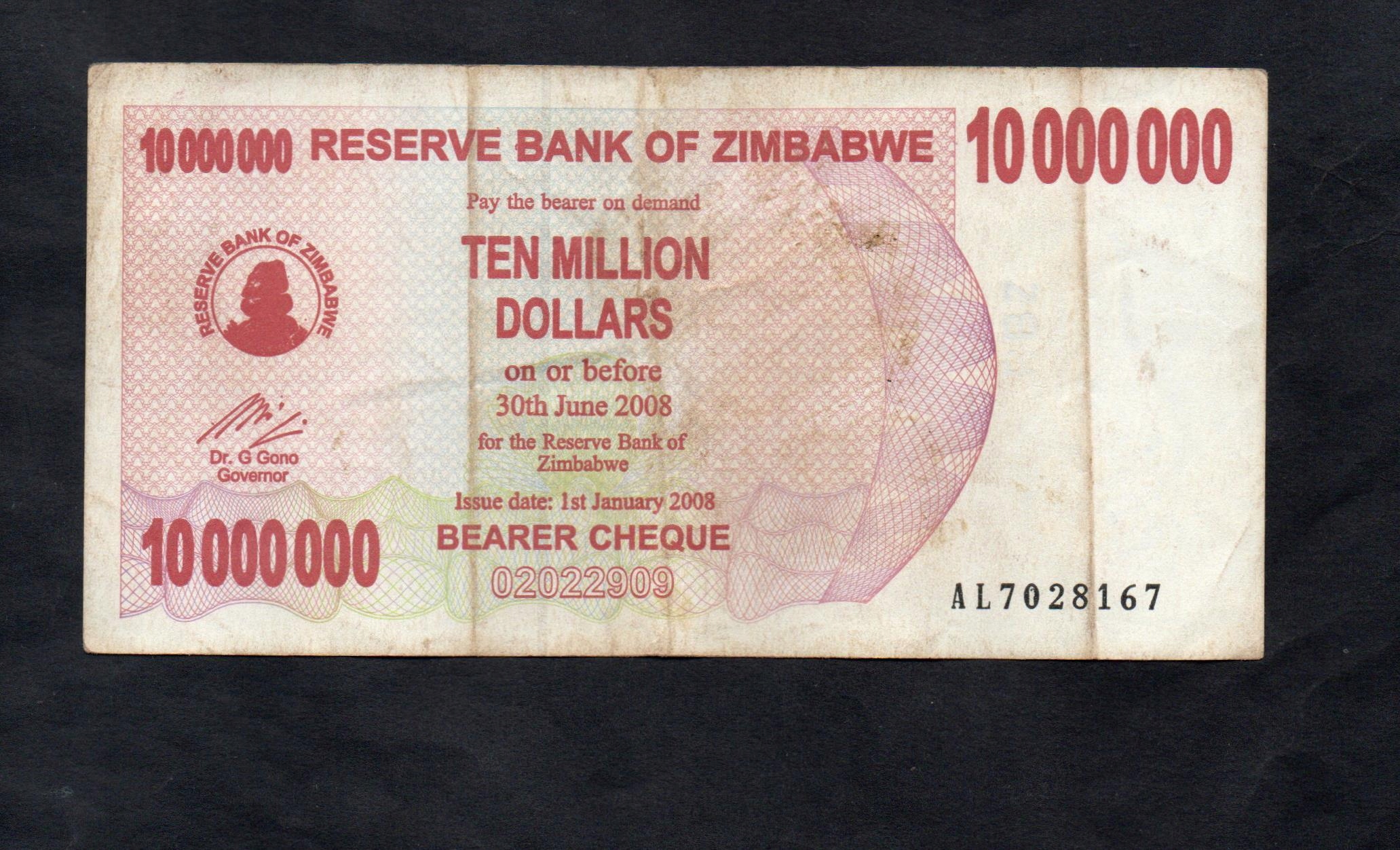BANKNOT ZIMBABWE -- 10000000 Dolarów -- 2008 rok