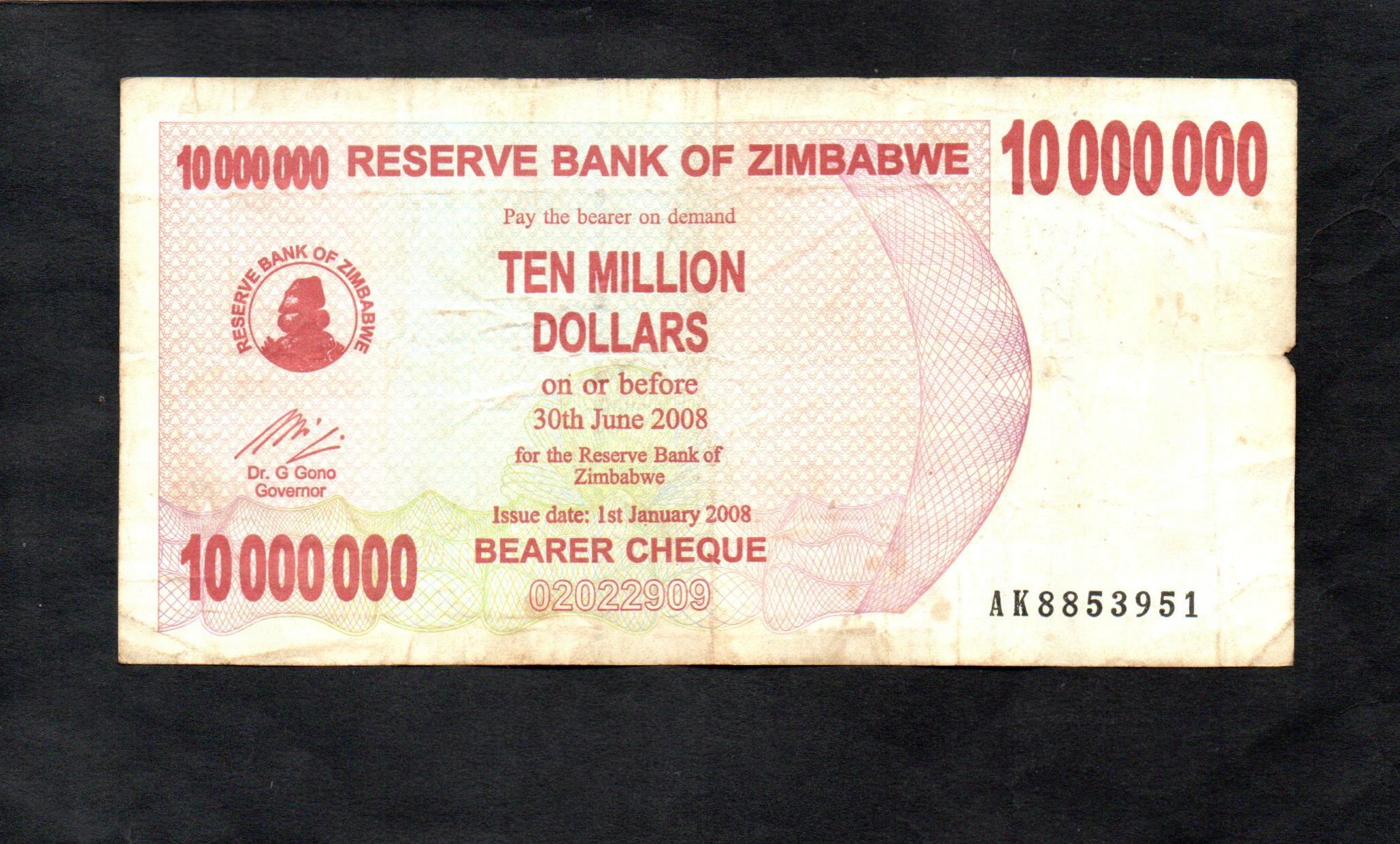 BANKNOT ZIMBABWE -- 10000000 Dolarów -- 2008 rok