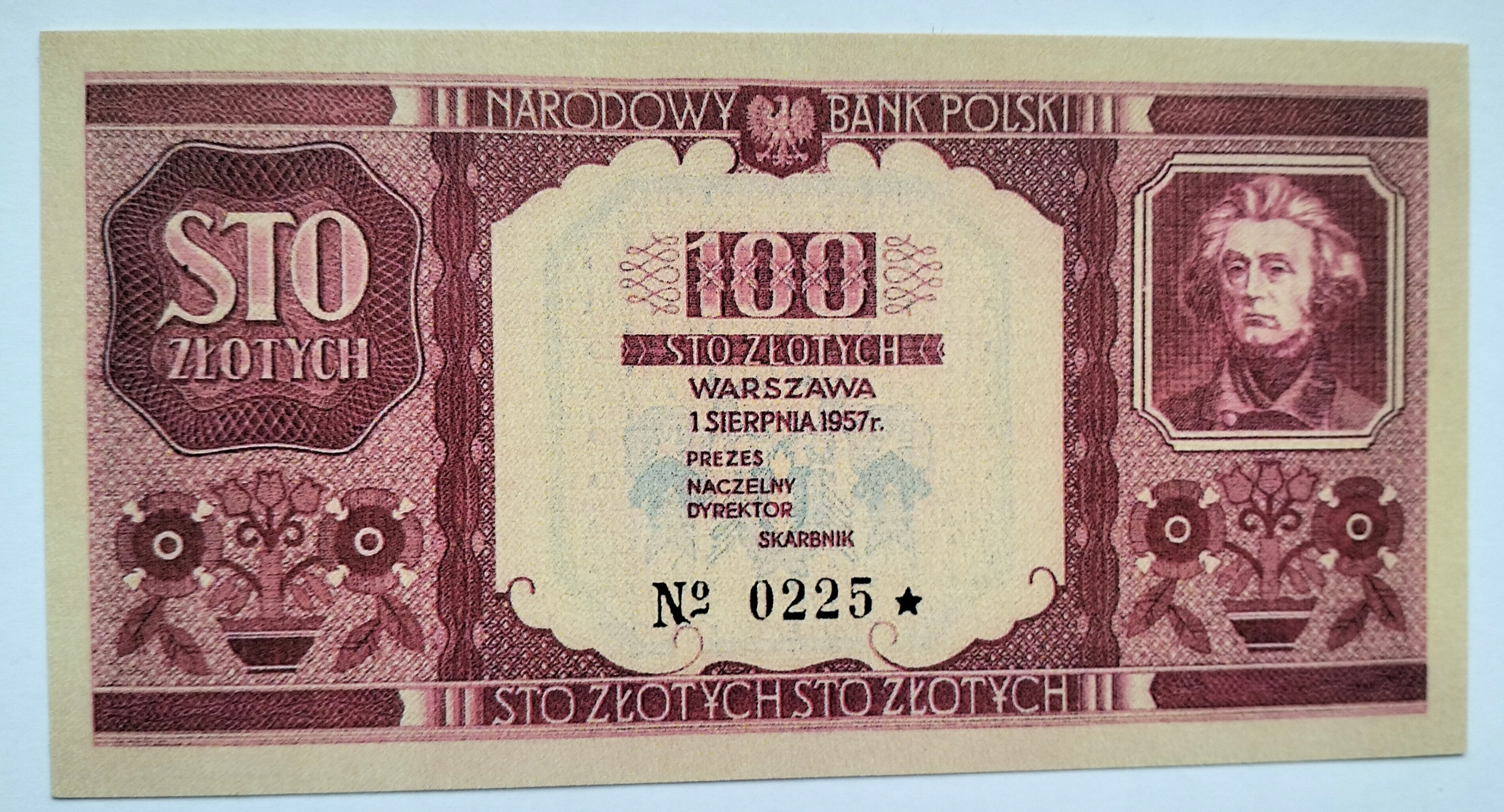БАНКНОТА - ПОЛЬЩА - 100 PLN 1957 - МІЦКЕВИЧ - КОПІЯ - Z1