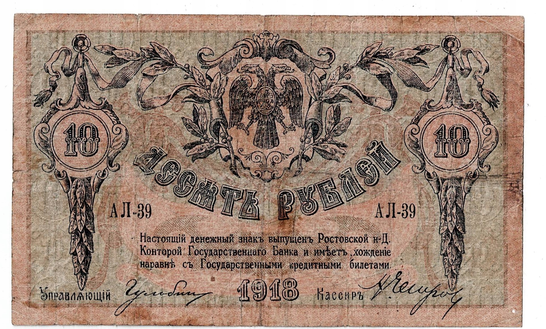 Банкнота, Росія, 10 рублів, 1918, Ростов