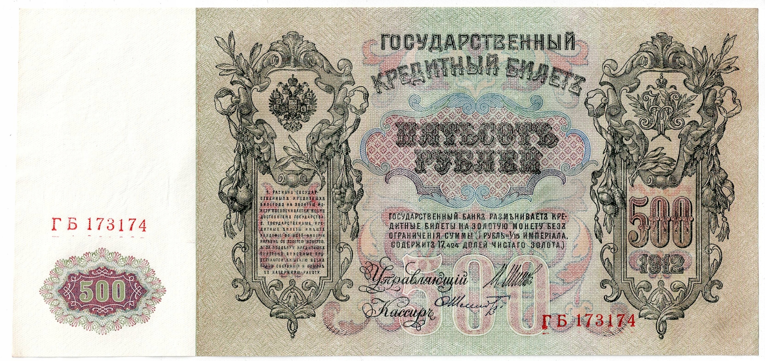 Банкнота, Росія 500 Рублів 1912 Умова 1-