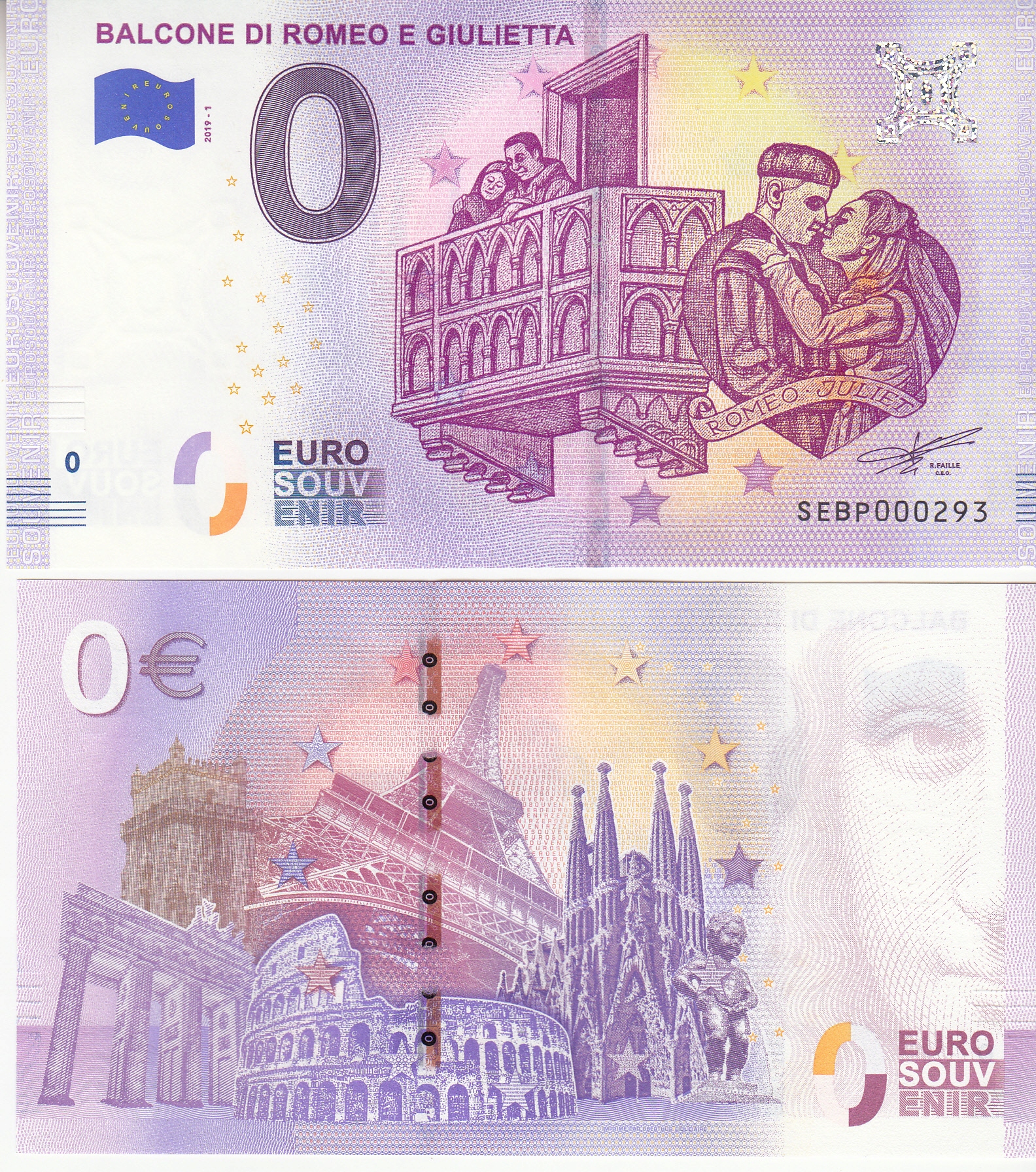 Банкнота 0-EURO-WLOCHY 2019-1-BALCONONE DI ROMEO E GIULIETTA