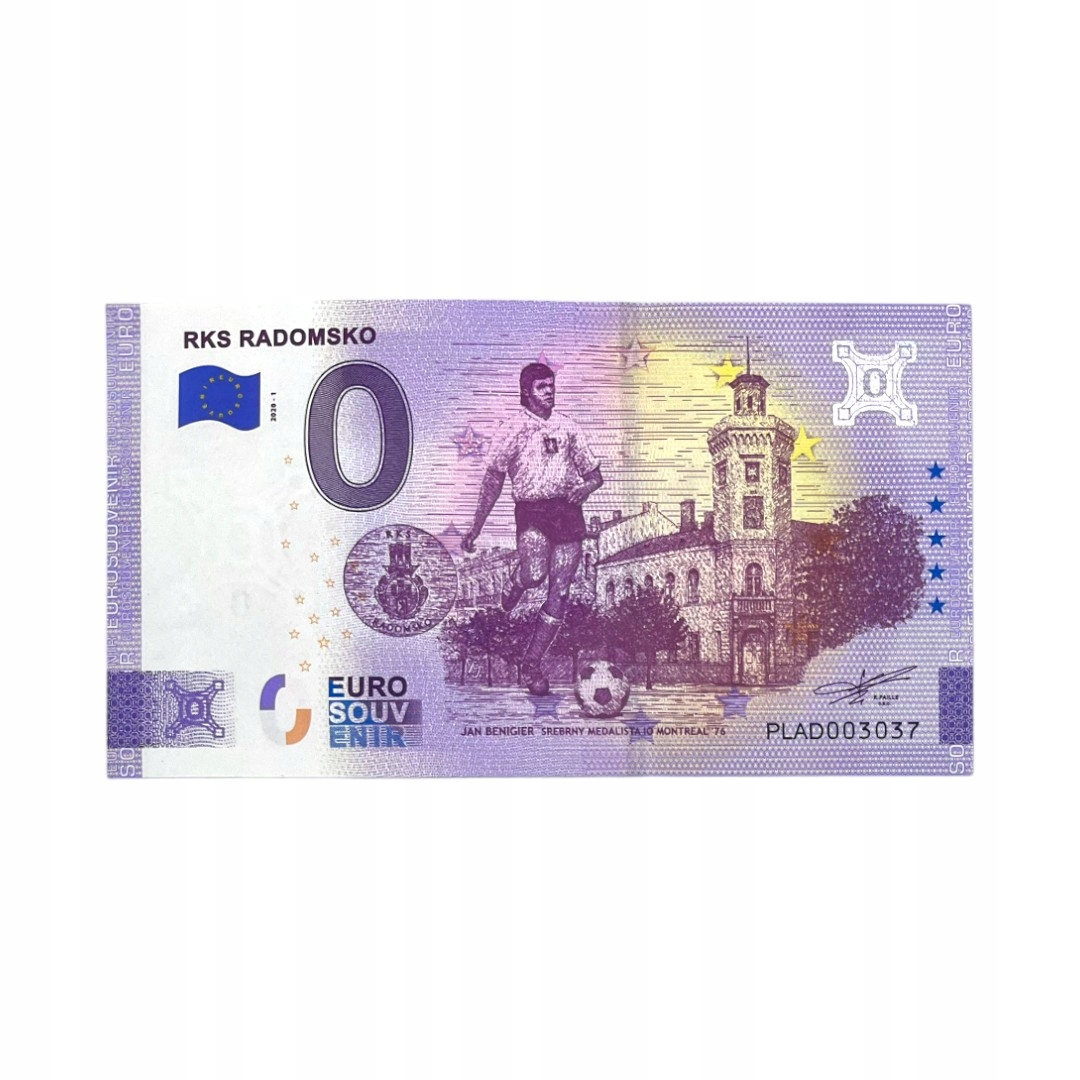пам'ятна банкнота 0 євро вшанування клубу "rks radomsko" та видатний футболіст Ян Беніг'єр .