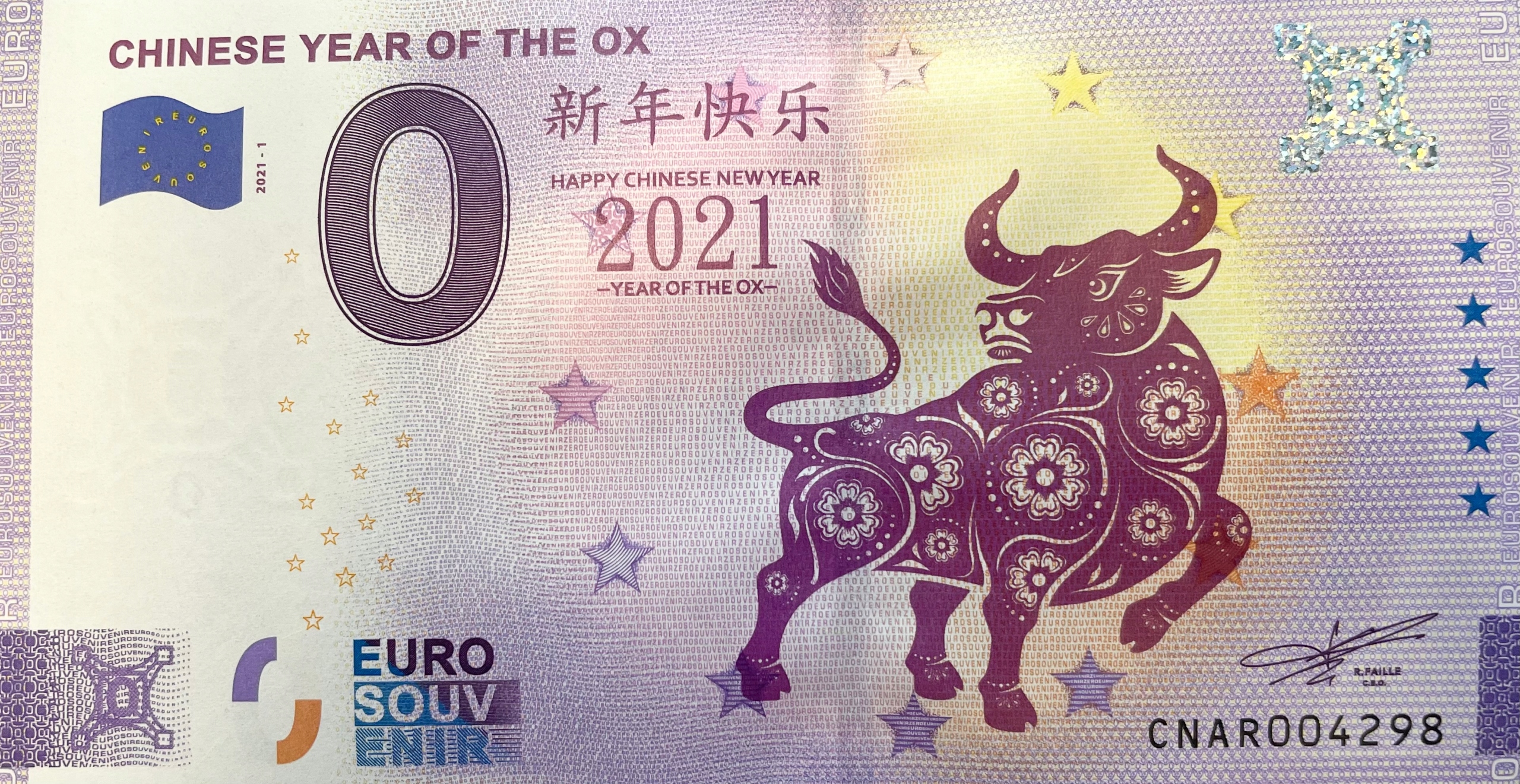 Банкнота 0 євро 2021 (Китай) - китайський рік бика