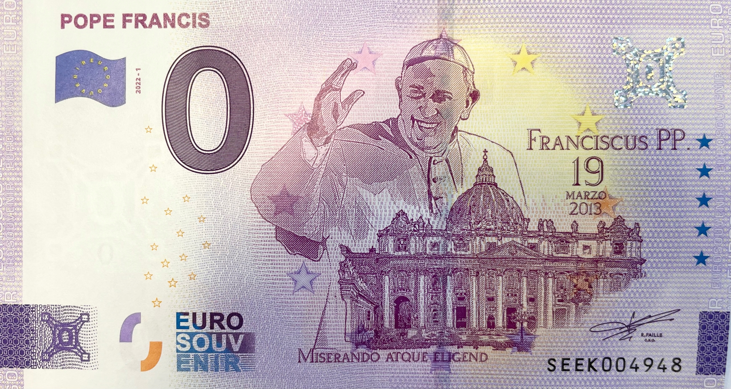 Банкнота 0 євро 2022 (Ватикан) - Папа Франциск