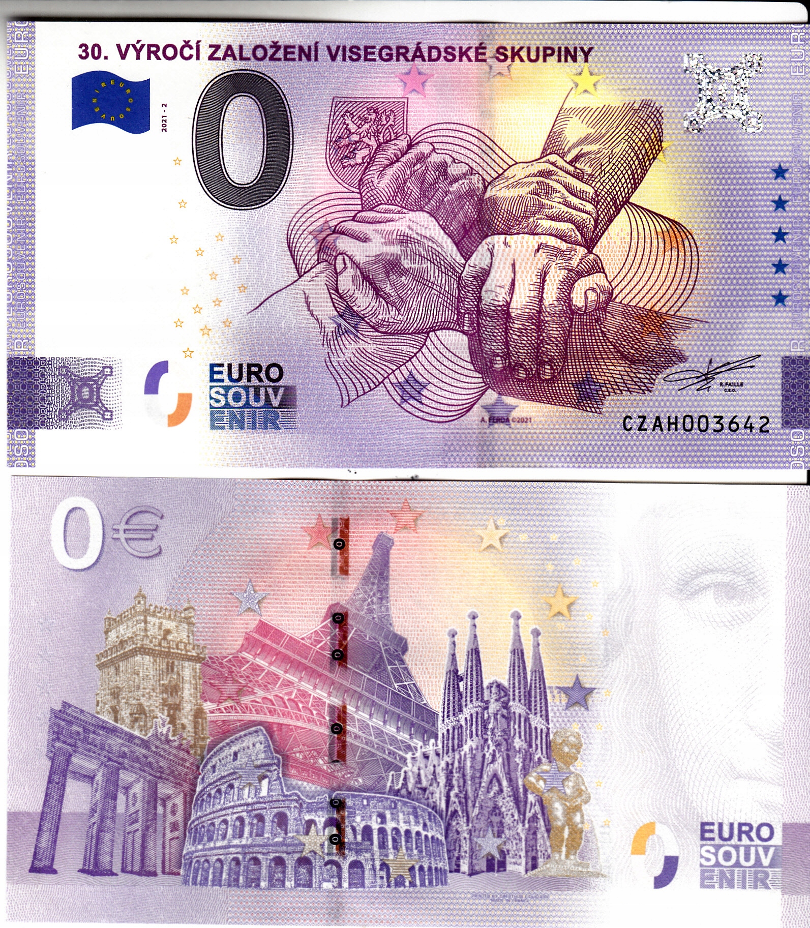 Банкнота 0 євро-Чеська Республіка -2021-2A 30.Roc. Вишеградське