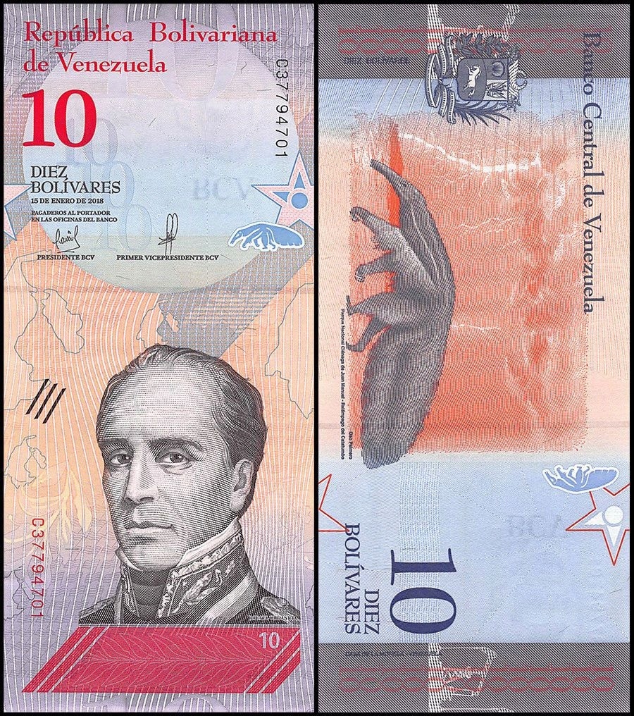 Банкнота номіналом 10 боліварів 2018 (Венесуела)